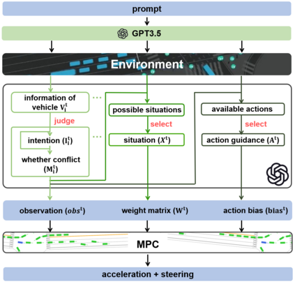 Existing learning-based autonomous driving (AD) systems face challenges in comprehending high-level information, generalizing to rare events, and providing interpretability. To address these problems, this work employs Large Language Models (LLMs) as a decision-making component for complex AD scenarios that require human commonsense understanding. We devise cognitive pathways to enable comprehensive reasoning with LLMs, and develop algorithms for translating LLM decisions into actionable driving commands. Through this approach, LLM decisions are seamlessly integrated with low-level controllers by guided parameter matrix adaptation. Extensive experiments demonstrate that our proposed method not only consistently surpasses baseline approaches in single-vehicle tasks, but also helps handle complex driving behaviors even multi-vehicle coordination, thanks to the commonsense reasoning capabilities of LLMs. This paper presents an initial step toward leveraging LLMs as effective decision-makers for intricate AD scenarios in terms of safety, efficiency, generalizability, and interoperability. We aspire for it to serve as inspiration for future research in this field. Project page: https://sites.google.com/view/llm-mpc