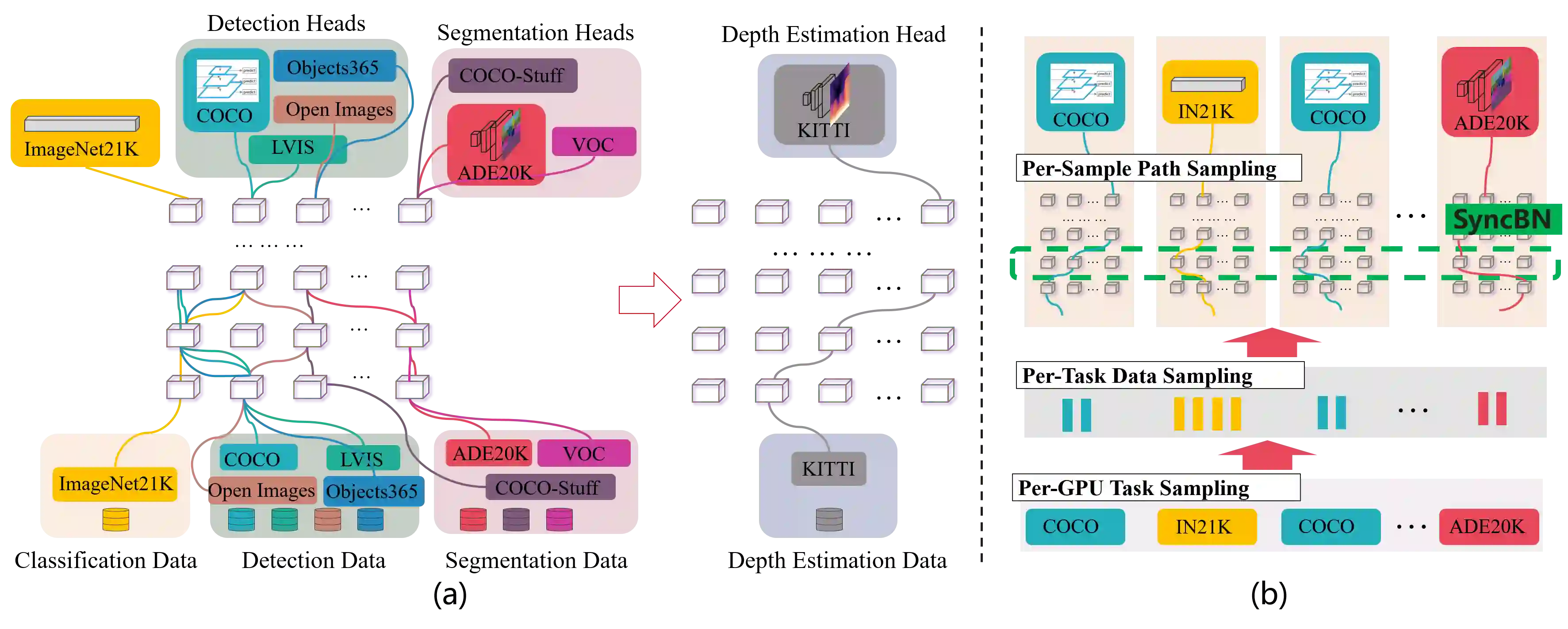 翻译:有关混合多任务、多领域和多模式数据的培训前培训,在培训前的愿景感知前,我们建议GPF(GPPF),即GPPF(GPPF)(General Perview Pre-trade框架),在任务级动态网络前,由每层的知识“legos”组成,在标签多任务和多领域数据集上。通过检查人类在复杂环境中学习的内在能力,我们认识三个关键要素,并将其传送到深层次网络:(1)同时接触不同跨任务和跨领域的信息。 (2) 共享驱动的单独类链(GPF)(GPF),将知识储存在共享前和下游任务中进行分离。 值得注意的是,不同视觉任务的联合培训是非动态的,因为它们在投入形状、损失功能、产出格式、数据分布等方面存在差异。 因此,我们创新地开发了一个跨组合式的多重任务改进算法,通过共享连续的多层次(SIMMTF) 的多级实验(SIMTA) 基础,同时进行大规模的SIMFIMT(SMT) 培训。