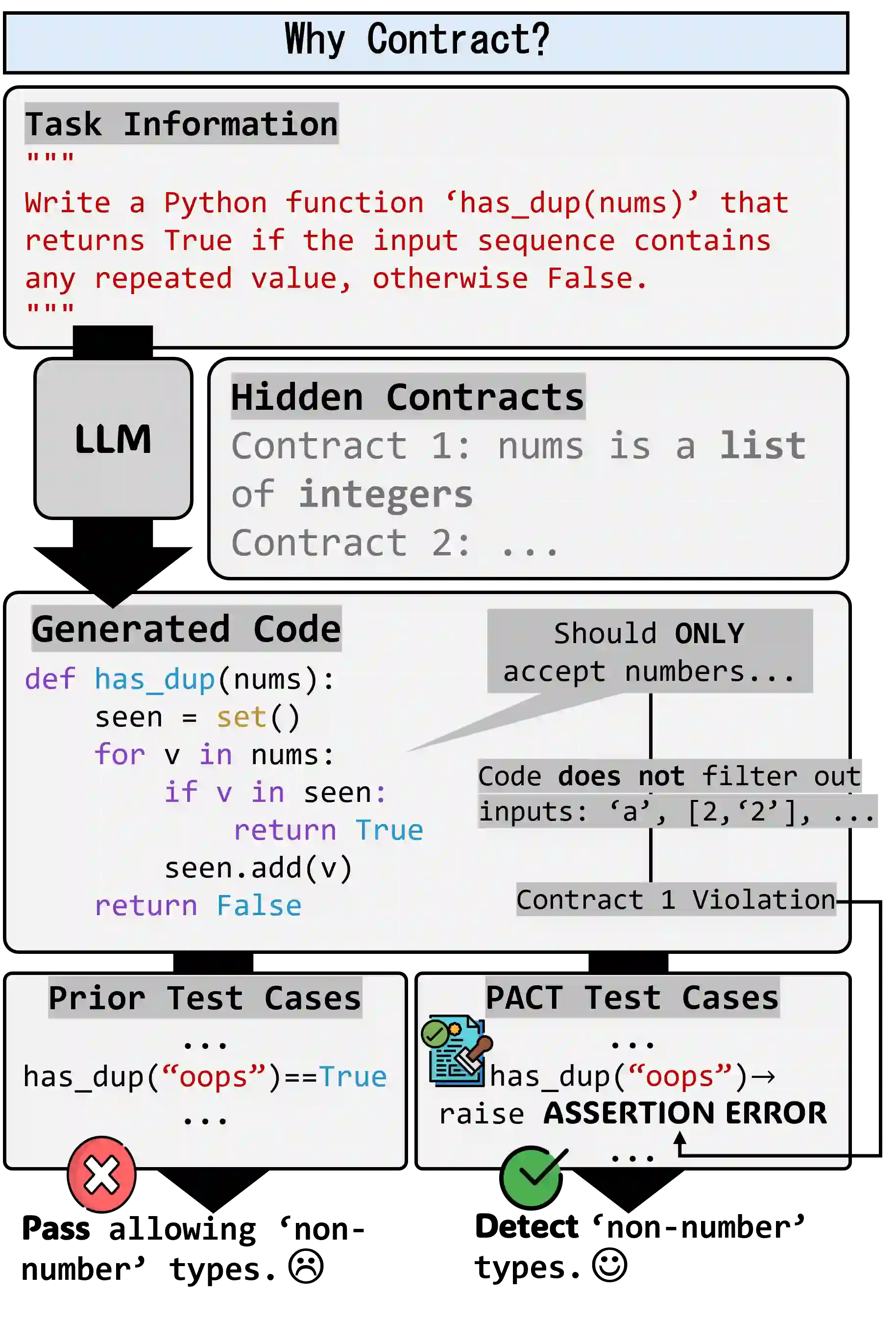 Prevailing code generation benchmarks, such as HumanEval+ and MBPP+, primarily evaluate large language models (LLMs) with pass@k on functional correctness using well-formed inputs. However, they ignore a crucial aspect of real-world software: adherence to contracts-the preconditions and validity constraints that dictate how ill-formed inputs must be rejected. This critical oversight means that existing benchmarks fail to measure, and models consequently fail to generate, truly robust and reliable code snippets. We introduce PACT, a program assessment and contract-adherence evaluation framework, to bridge this gap. PACT is the first framework designed to systematically evaluate and enhance contract-adherence in LLM-generated code snippets alongside functional correctness. PACT's contributions are threefold: First, it provides a comprehensive test-suite corpus focused on contract violations, extending HumanEval+ and MBPP+. Second, it enables a systematic analysis of code generation under varied prompting conditions. This analysis demonstrates that augmenting prompts with contract-violating test cases significantly enhance a model's ability to respect contracts compared to using contract description alone. Finally, it introduces novel metrics to rigorously quantify contract adherence in both test generation and code generation. By revealing critical errors that conventional benchmarks overlook, PACT provides the rigorous and interpretable metrics to evaluate the robustness of LLM-generated code snippets in both functionality and contract-adherence. Our code and data are available at https://github.com/suhanmen/PACT.