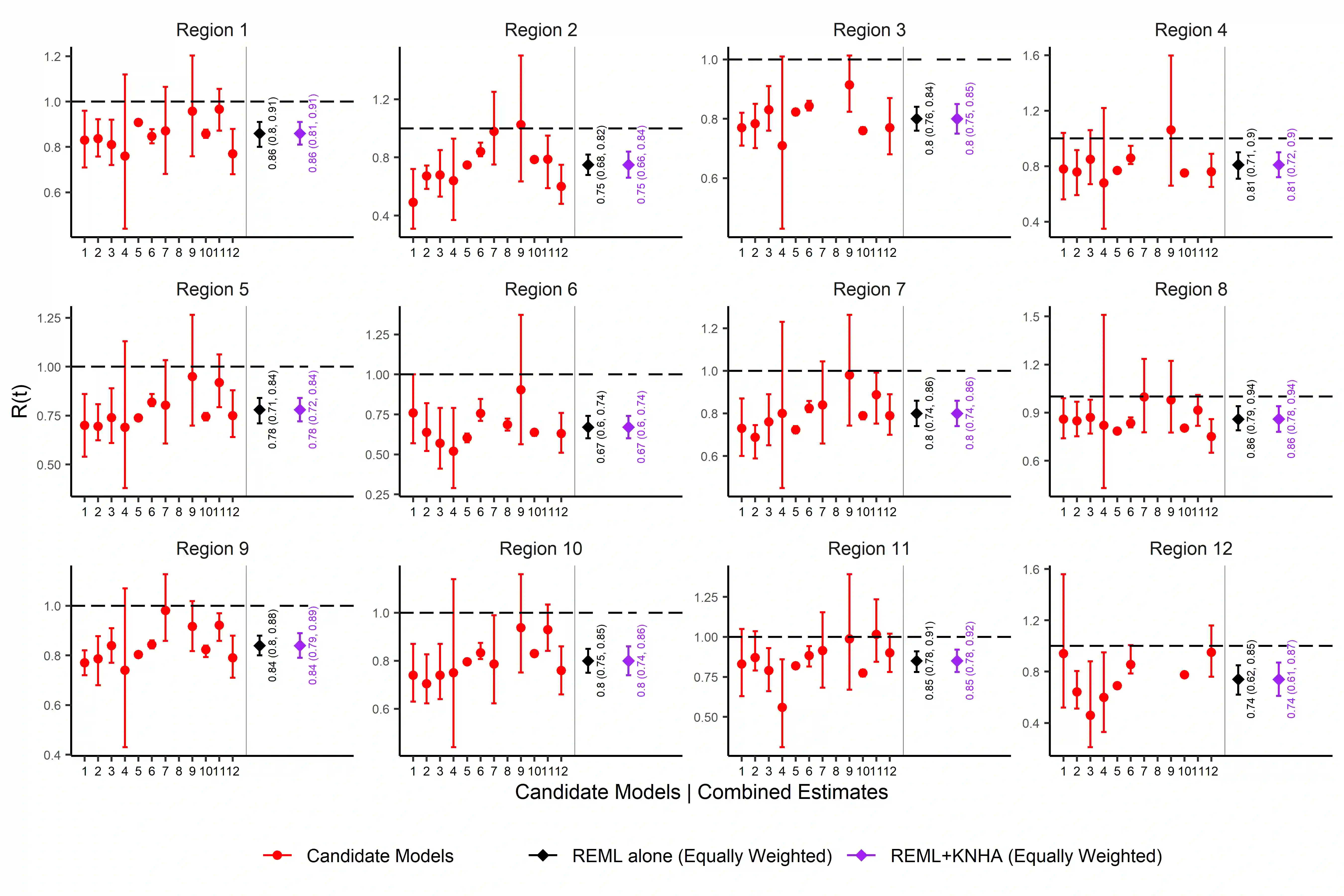 翻译:在最近的COVID-19大流行中,使用了一系列广泛的流行病学建模方法来预测有效的复制号、R(t)和其他COVID-19相关措施,如指数增长率的每日指数增长率,r(t)。这些候选模型使用不同的建模方法或对空间或年龄混合的不同假设,有些则捕捉了对疾病动态的科学理解的真正不确定性。从多个候选模型中采用适当的统计方法将估计数结合起来,对于更好地了解这些结果措施的差异,以帮助决策。在本文件中,我们采用随机效应元分析技术,利用有限的最大可能性(REML)方法来估计异性差异参数,以及两种方法来计算综合估计数的信心间隔:标准Wald类型间隔;以及Knapp和Hartung(KNHA)方法。由于这一环境中的估计数是使用模型预测得出的,每个模型的不确定性程度各不相同,因此赞成这些估算与所有更标准的逆差加权法相比,以避免可能使提供低不确定性的模型的增量(REML)方法用于估计异性差异参数,而这种不确定性的低度是无法对内在不确定性进行充分计算的关键数据分析。