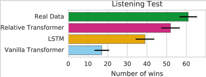 翻译:音乐在很大程度上依赖重复来构建结构和含义。 自 自我参照发生在多个时间尺度上, 从元素到词组, 以及音乐整段内容的重复使用, 例如与ABA结构的片段。 变形器( Vaswani et al., 2017) 是一个基于自我注意的序列模型, 在许多需要保持远程一致性的一代任务中, 已经取得了令人信服的结果 。 这表明自我注意可能也非常适合模拟音乐。 然而, 在音乐构成和性能中, 相对时间尺度是极为重要的。 以对称距离( Shaw et al., 2018) 为基础, 代表变形器中相对位置信息的当前方法, 以及重新使用整段音频结构的音乐成份等长序列。 变形器( Vaswani et al., 201717) 由于中间相对信息的记忆复杂性在序列长度中是四分立的, 我们建议一种算法, 将其中间记忆要求降低到我的序列长度。 这让我们能够证明一个变形器与我们的相对关注机制可以产生一分秒的组合组成( 千个步骤, 四倍的步伐, 在Oore etal etal etal- lavequal laus) 结构上, 我们的变形的C- deal deal deal develillational deal deal deal se res res roal deal deal deal se se routs routs seal seal seal lacude se se lautal lautds sqs
