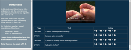 翻译:视频理解是一项关键且具有挑战性的任务。 在涉及人类等活跃代理物的视频中, 代理物的行动可以给场景带来无数变化。 这些变化可以观察到, 比如视频的移动、 操纵和变换, 这些变化体现在常规视频字幕中。 然而, 与图像不同, 视频中的行动也与社会和常识方面有着内在的联系, 比如意图( 为何采取行动)、 属性( 比如谁在采取行动, 在哪里, 使用什么等等) 和影响( 行动导致的世界变化, 行动对其他代理物的影响) 。 因此, 这些变化对于视频理解, 比如在对视频进行字幕或回答关于视频的问题时, 人们必须了解这些常见的视频描述。 我们首先从视频中生成 \ textitit{ comsense} 标题, 以便描述意图、 属性和影响等潜在方面。 我们展示了一个新的数据集“ 以什么为基础, 使用什么等等, 使用什么等等, 以及效果2 视频( V2C ), 包含人类代理者进行各种行动的9k 视频视频视频视频视频视频视频视频视频视频视频视频视频视频, 以及我们用来解释的共同问题。