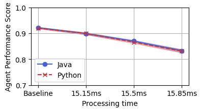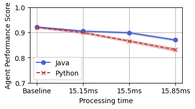 This paper proposes a delay mechanism to mitigate the impact of latency differences in the gRPC framework--a high-performance, open-source universal remote procedure call (RPC) framework--between different programming languages on the performance of agents in DareFightingICE, a fighting game research platform. The study finds that gRPC latency differences between Java and Python can significantly impact real-time decision-making. Without a delay mechanism, Java-based agents outperform Python-based ones due to lower gRPC latency on the Java platform. However, with the proposed delay mechanism, both Java-based and Python-based agents exhibit similar performance, leading to a fair comparison between agents developed using different programming languages. Thus, this work underscores the crucial importance of considering gRPC latency when developing and evaluating agents in DareFightingICE, and the insights gained could potentially extend to other gRPC-based applications.