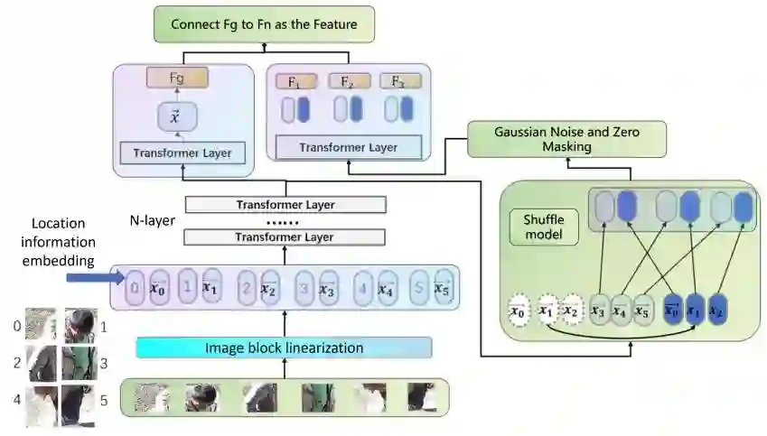 翻译:监控场景中的行人重识别(ReID)面临着遮挡、视角畸变和图像质量不佳等挑战。现有方法大多依赖复杂模块,或仅在清晰正面图像上表现良好。本文提出Sh-ViT(Shuffling Vision Transformer),一种用于遮挡行人重识别的轻量且鲁棒的模型。该模型基于ViT-Base架构,引入三个核心组件:首先,在最终Transformer层中设计Shuffle模块,以打破空间相关性并增强对遮挡与模糊的鲁棒性;其次,采用场景自适应数据增强(包括几何变换、擦除、模糊和色彩调整)来模拟实际监控条件;第三,基于DeiT的知识蒸馏策略,以在有限标注数据下提升学习效果。为支持真实场景评估,我们构建了MyTT数据集,包含基站巡检场景中超过10,000名行人和30,000余张图像,其中频繁出现设备遮挡和相机视角变化。实验表明,Sh-ViT在MyTT数据集上达到83.2%的Rank-1准确率和80.1%的mAP,优于CNN与ViT基线模型;在Market1501数据集上取得94.6%的Rank-1准确率和87.5%的mAP,超越了当前最先进方法。综上所述,Sh-ViT在不依赖外部模块的情况下提升了对遮挡与模糊的鲁棒性,为基于监控的人员监测提供了实用解决方案。