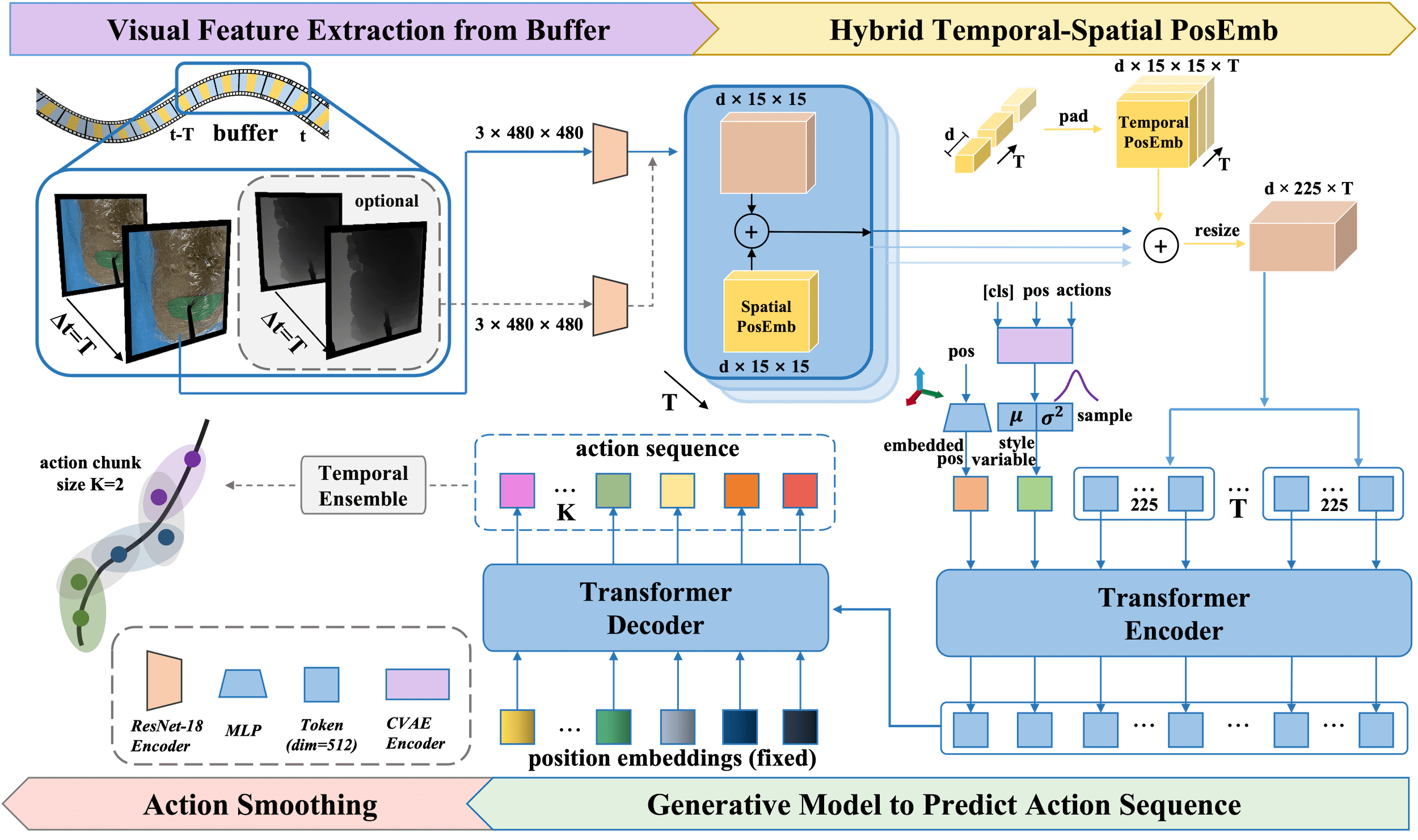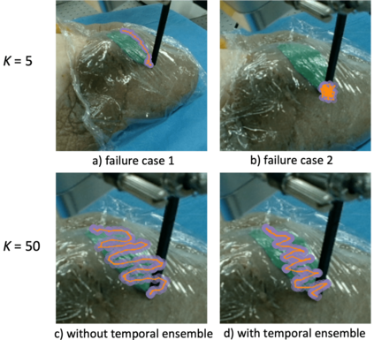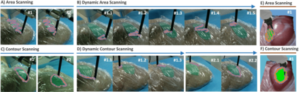 Optical sensing technologies are emerging technologies used in cancer surgeries to ensure the complete removal of cancerous tissue. While point-wise assessment has many potential applications, incorporating automated large area scanning would enable holistic tissue sampling. However, such scanning tasks are challenging due to their long-horizon dependency and the requirement for fine-grained motion. To address these issues, we introduce Memorized Action Chunking with Transformers (MACT), an intuitive yet efficient imitation learning method for tissue surface scanning tasks. It utilizes a sequence of past images as historical information to predict near-future action sequences. In addition, hybrid temporal-spatial positional embeddings were employed to facilitate learning. In various simulation settings, MACT demonstrated significant improvements in contour scanning and area scanning over the baseline model. In real-world testing, with only 50 demonstration trajectories, MACT surpassed the baseline model by achieving a 60-80% success rate on all scanning tasks. Our findings suggest that MACT is a promising model for adaptive scanning in surgical settings.
