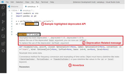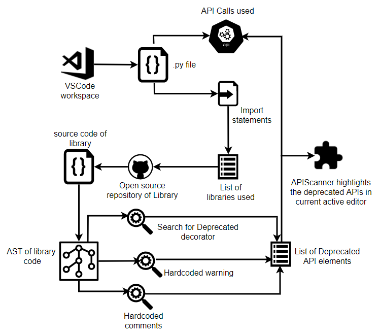 Python libraries are widely used for machine learning and scientific computing tasks today. APIs in Python libraries are deprecated due to feature enhancements and bug fixes in the same way as in other languages. These deprecated APIs are discouraged from being used in further software development. Manually detecting and replacing deprecated APIs is a tedious and time-consuming task due to the large number of API calls used in the projects. Moreover, the lack of proper documentation for these deprecated APIs makes the task challenging. To address this challenge, we propose an algorithm and a tool APIScanner that automatically detects deprecated APIs in Python libraries. This algorithm parses the source code of the libraries using abstract syntax tree (ASTs) and identifies the deprecated APIs via decorator, hard-coded warning or comments. APIScanner is a Visual Studio Code Extension that highlights and warns the developer on the use of deprecated API elements while writing the source code. The tool can help developers to avoid using deprecated API elements without the execution of code. We tested our algorithm and tool on six popular Python libraries, which detected 838 of 871 deprecated API elements. Demo of APIScanner: https://youtu.be/1hy_ugf-iek. Documentation, tool, and source code can be found here: https://rishitha957.github.io/APIScanner.