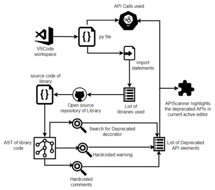 翻译:Python 图书馆广泛用于机器学习和科学计算任务; Python 图书馆的API由于功能增强和错误修正而退化; 这些被损坏的API 无法用于软件的进一步开发; 人工检测和替换被损坏的API是一个乏味和耗时的任务,原因是项目中使用了大量的API电话; 此外,这些被损坏的API 缺乏适当的文件使任务具有挑战性; 为了应对这一挑战,我们建议了一种算法和一个工具APIScanner,该算法和工具可以自动检测Python 图书馆中被损坏的APIS 。 这个算法用抽象的合成树(ASTs)来分析图书馆的源代码,并查明了被损坏的API, 硬编码警告或评论。 APIS Canner 是一个视觉工作室代码扩展,可以突出和警告开发者使用被损坏的 API 要素,同时写入源代码。 工具可以帮助开发者在不使用我们内部的 API IMIS 中检测到的 6- decread AS 。