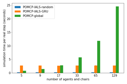 翻译:在可能涉及许多其他代理人的复杂环境中,我们如何能够实时有效地计划控制一个代理人?虽然现有的抽样规划者在大型POMDPs中取得了经验性的成功,但其性能在很大程度上依赖于快速模拟器。然而,现实世界的情景在性质上是复杂的,其模拟器往往在计算上要求很高,这严重限制了在线规划者的业绩。在这项工作中,我们建议采用影响力增强的在线规划,这是将整个环境的因子模拟器转换成一个当地模拟器的一种原则方法,该模拟器只对与规划者观察和奖励最相关的状态变量进行取样,并利用机器学习方法捕捉环境其余部分的影响。我们的主要实验结果显示,在这种不太准确但速度更快的地方模拟器上与POMCP一起进行规划会提高实时规划性,而不是对模拟整个环境的模拟器进行规划。