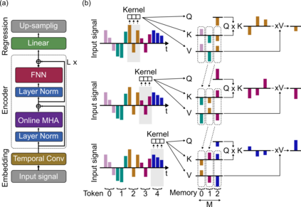 翻译:Transformer是目前在大多数序列处理任务中表现最好的网络。然而,Transformer中通常使用的自我关注机制需要较长的时间窗口来进行每个计算步骤,因此相较于递归神经网络(RNNs),使其不太适用于在线信号处理。在本文中,我们使用滑动窗口注意机制代替自我关注机制,证明了该机制对于具有有限范围依赖关系的输入与目标之间的连续信号更加高效,并且我们可以使用它逐个元素地处理序列,因此使其与在线处理相兼容。我们在NinaproDB8手指位置回归数据集上测试我们的模型,该数据集使用皮肤上的表面肌电信号(sEMG)测量以估计肌肉活动。我们的方法在这个数据集上实现了最新的准确性记录,并且在每个推理步骤中仅需要3.5毫秒的非常短的时间窗口。此外,我们使用Leaky-Integrate and Fire(LIF)神经元单元增加了网络的稀疏性,LIF是一种生物启发式的神经元模型,仅在通过阈值时稀疏地激活。因此,我们将突触操作数量降低了多达$\times5.3$,而不会丧失准确性。我们的结果为准确而快速的sEMG信号在线处理提供了巨大的希望,是Transformer和脉冲神经网络(SNNs)集成进行能量高效的时间信号处理的一步。