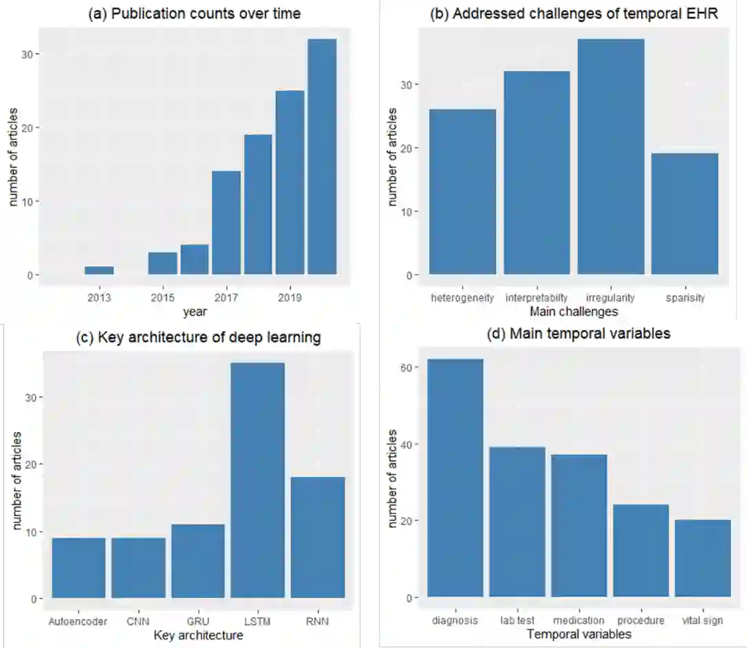 翻译:目标:时间电子健康记录(EHRs)可以是用于二次用途的丰富信息,如临床事件预测或慢性疾病管理等。然而,在时间数据代表性方面存在挑战。因此,我们力求通过系统研究深层学习解决方案,查明这些挑战并评价应对这些挑战的新方法。方法:我们搜索了五个数据库(PubMed、EMBASE、电气和电子工程师研究所Xplore数字图书馆、计算机机械数字图书馆和科学网),并在几个著名的计算机科学会议程序中进行亲身研究。我们寻求文章,报告2010年1月1日至2020年8月30日期间在结构化电子人力资源数据中采用时间数据代表性的深层学习方法。我们从三个角度总结并分析了选定的文章:时间序列的性质、方法和模型执行模式。结果:我们列入了98篇关于利用深层学习的时间数据代表性的文章。确定了四项主要挑战,包括数据异常性、数据模型性、数据紧张性、数据紧张性以及模型不透明性。我们随后研究了如何应用深层次学习技术来应对这些挑战。我们从2010年1月1日至2020年8月30日期间,从结构中总结了当前在深度数据利用过程中的一些公开数据影响。