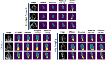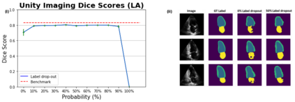 Echocardiography (echo) is the first imaging modality used when assessing cardiac function. The measurement of functional biomarkers from echo relies upon the segmentation of cardiac structures and deep learning models have been proposed to automate the segmentation process. However, in order to translate these tools to widespread clinical use it is important that the segmentation models are robust to a wide variety of images (e.g. acquired from different scanners, by operators with different levels of expertise etc.). To achieve this level of robustness it is necessary that the models are trained with multiple diverse datasets. A significant challenge faced when training with multiple diverse datasets is the variation in label presence, i.e. the combined data are often partially-labelled. Adaptations of the cross entropy loss function have been proposed to deal with partially labelled data. In this paper we show that training naively with such a loss function and multiple diverse datasets can lead to a form of shortcut learning, where the model associates label presence with domain characteristics, leading to a drop in performance. To address this problem, we propose a novel label dropout scheme to break the link between domain characteristics and the presence or absence of labels. We demonstrate that label dropout improves echo segmentation Dice score by 62% and 25% on two cardiac structures when training using multiple diverse partially labelled datasets.