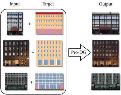 We present Pro-DG, a framework for procedurally controllable photo-realistic facade generation that combines a procedural shape grammar with diffusion-based image synthesis. Starting from a single input image, we reconstruct its facade layout using grammar rules, then edit that structure through user-defined transformations. As facades are inherently multi-hierarchical structures, we introduce hierarchical matching procedure that aligns facade structures at different levels which is used to introduce control maps to guide a generative diffusion pipeline. This approach retains local appearance fidelity while accommodating large-scale edits such as floor duplication or window rearrangement. We provide a thorough evaluation, comparing Pro-DG against inpainting-based baselines and synthetic ground truths. Our user study and quantitative measurements indicate improved preservation of architectural identity and higher edit accuracy. Our novel method is the first to integrate neuro-symbolically derived shape-grammars for modeling with modern generative model and highlights the broader potential of such approaches for precise and controllable image manipulation.
