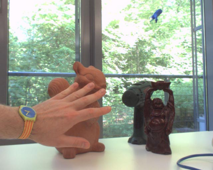 翻译:我们建议使用单镜 RGB 相机实时跟踪 6DOF 显示刻板的 3D 对象的算法。 关键的想法是使用时间一致的本地色直方图生成基于区域的成本功能。 虽然这种基于区域的成本功能通常使用一阶梯下移技术优化,但我们系统地生成高斯- 纽顿优化计划,该计划导致快速趋同和高度准确和稳健的跟踪性能。 我们还建议建立一个新的复杂数据集,专门用于单镜对象构成的跟踪任务,并向公众公布。 据我们所知,这是第一个在封闭的场景中同时移动相机和物体的常见和重要情景。 在无数实验中,我们证明拟议的高斯- 纽顿方法超越了现有方法,特别是在存在封闭的背景、混杂物体和部分隐蔽的情况下。