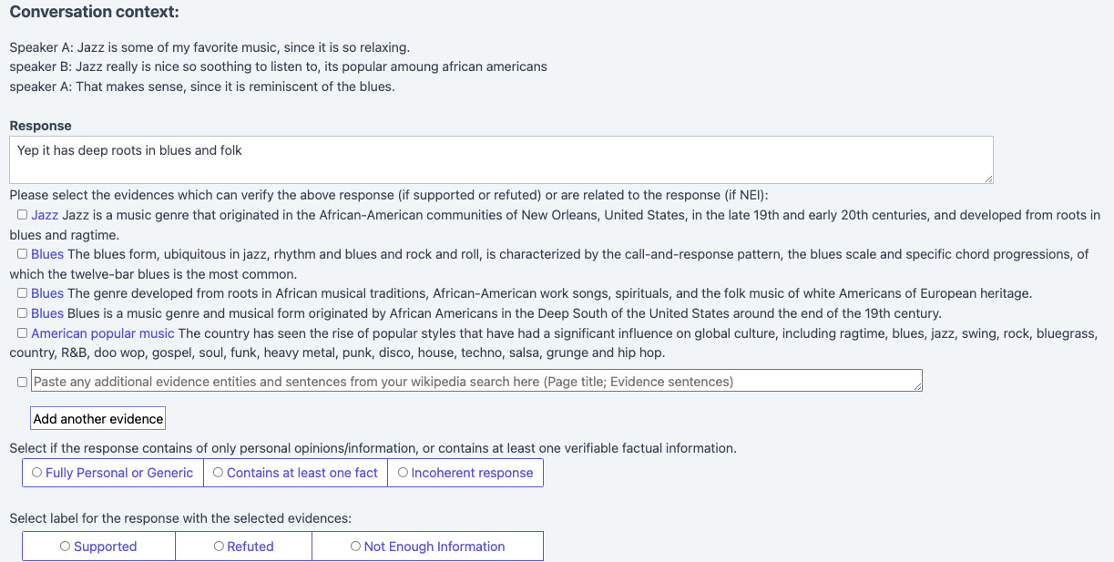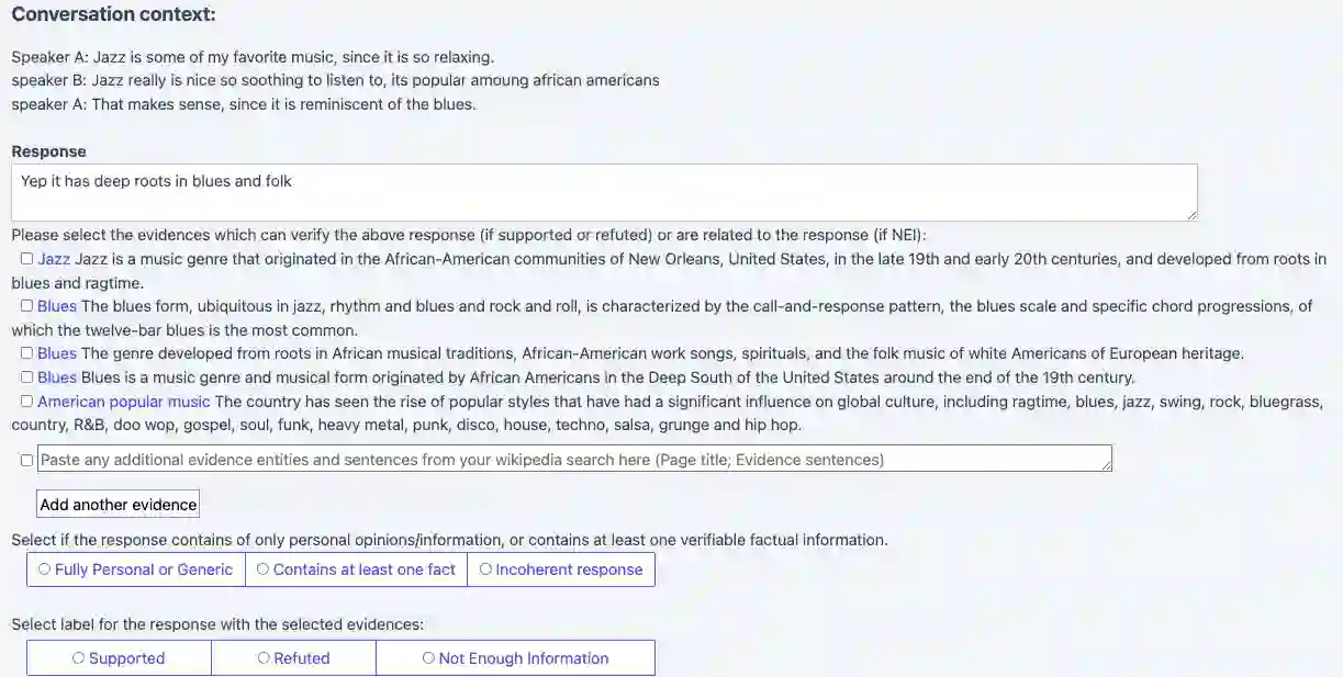 翻译:事实检查是减少错误和虚假信息扩散的基本工具,然而,经常探讨如何用事实检查来核实正式的单一判决要求,而不是泛泛的谈话要求。为了研究这一问题,我们提出在对话中进行事实检查的任务。我们建立了DialFact,这是22 245个附加说明的谈话要求的测试基准数据集,与维基百科提供的证据相配。在DialFact中有三个次级任务:1)可核实的索赔检验任务区分一项答复是否包含可核查的事实信息;2)证据检索任务检索最相关的维基百科片作为证据;3)索赔核查任务预测对话反应将得到支持、反驳或不充分的信息。我们发现,现有关于Fever等非对话数据培训的事实核查模型未能很好地完成我们的任务,因此我们提出了一个简单但有效的解决方案,以有效改进对话中的事实检查业绩。我们指出, DialFact在处理学术辩论、参照和检索错误分析中的模糊性以说明未来研究方向。