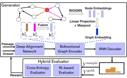 翻译:自然问题生成(QG)旨在从一个段落和答案中产生问题。在本文中,我们为QG提出了一个新的强化学习(RL)基于图形到序列(Graph2Seq)模型。我们的模型包括一个Greaph2Seq生成器,在这个生成器中,提出了一个新的双向图形神经网络以嵌入该通道,以及一个混合评价器,其混合目标将交叉元素和RL损失结合起来,以确保生成在实际和语义上有效的文本。拟议的模型在SquAD数据集上以大幅度的距离比以前最先进的方法要好。