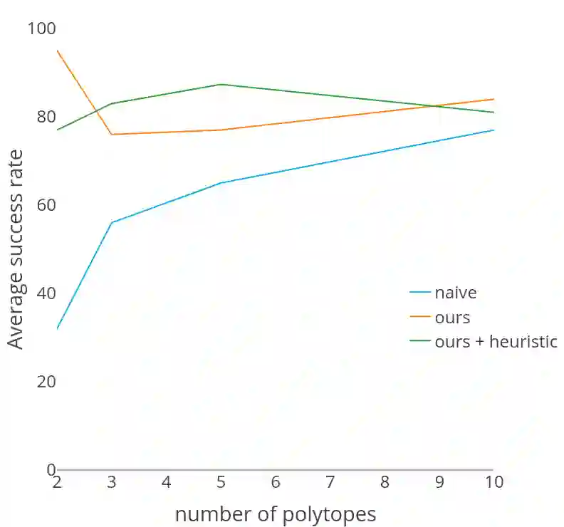 翻译:非线性轨迹优化(TO)方法需要良好的初步猜想,以便汇合到一个当地最佳的解决方案。 通常可以通过为轨迹的完成分配大量时间来获得可行的猜想。 但是,对于人类机器人等不稳定的动态系统来说,这种准静态假设并不总能站住脚。 我们建议对问题进行保守的提法,同时计算可行的路径和时间分配。 问题作为高效的convex优化问题来解决,保证它与当地的最佳解决方案汇合。 这种方法的兴趣表现在对按顺序绕绕多面序列的可行轨迹的计算中。 我们证明,在准静态解决方案无法被接受的问题上,我们的方法能够找到一种可行的解决方案,在所考虑的所有情景中,成功率超过80 ⁇ 美元,对于涉及不超过5个多面的问题不超过10米,对于涉及20个多面的问题小于1米的问题,我们能够可靠地向先进的非线性解决方案提供初步猜测。