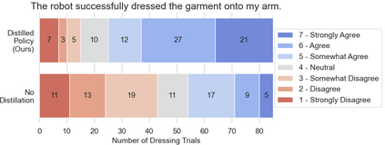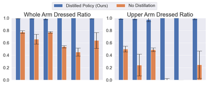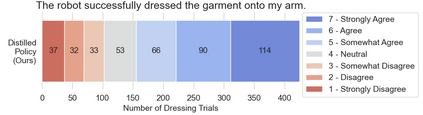 Robot-assisted dressing could benefit the lives of many people such as older adults and individuals with disabilities. Despite such potential, robot-assisted dressing remains a challenging task for robotics as it involves complex manipulation of deformable cloth in 3D space. Many prior works aim to solve the robot-assisted dressing task, but they make certain assumptions such as a fixed garment and a fixed arm pose that limit their ability to generalize. In this work, we develop a robot-assisted dressing system that is able to dress different garments on people with diverse poses from partial point cloud observations, based on a learned policy. We show that with proper design of the policy architecture and Q function, reinforcement learning (RL) can be used to learn effective policies with partial point cloud observations that work well for dressing diverse garments. We further leverage policy distillation to combine multiple policies trained on different ranges of human arm poses into a single policy that works over a wide range of different arm poses. We conduct comprehensive real-world evaluations of our system with 510 dressing trials in a human study with 17 participants with different arm poses and dressed garments. Our system is able to dress 86% of the length of the participants' arms on average. Videos can be found on our project webpage: https://sites.google.com/view/one-policy-dress.