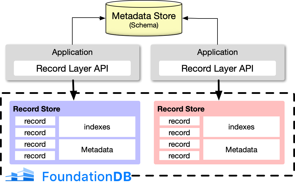 The FoundationDB Record Layer is an open source library that provides a record-oriented datastore with semantics similar to a relational database, implemented on top of FoundationDB, an ordered, transactional key-value store. The Record Layer provides a lightweight, highly extensible way to store structured data. It offers schema management and a rich set of query and indexing facilities, some of which are not usually found in traditional relational databases, such as nested record types, indexes on commit versions, and indexes that span multiple record types. The Record Layer is stateless and built for massive multi-tenancy, encapsulating and isolating all of a tenant's state, including indexes, into a separate logical database. We demonstrate how the Record Layer is used by CloudKit, Apple's cloud backend service, to provide powerful abstractions to applications serving hundreds of millions of users. CloudKit uses the Record Layer to host billions of independent databases, many with a common schema. Features provided by the Record Layer enable CloudKit to provide richer APIs and stronger semantics, with reduced maintenance overhead and improved scalability.