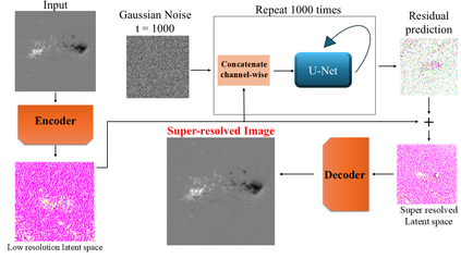 The spatial properties of the solar magnetic field are crucial to decoding the physical processes in the solar interior and their interplanetary effects. However, observations from older instruments, such as the Michelson Doppler Imager (MDI), have limited spatial or temporal resolution, which hinders the ability to study small-scale solar features in detail. Super resolving these older datasets is essential for uniform analysis across different solar cycles, enabling better characterization of solar flares, active regions, and magnetic network dynamics. In this work, we introduce a novel diffusion model approach for Super-Resolution and we apply it to MDI magnetograms to match the higher-resolution capabilities of the Helioseismic and Magnetic Imager (HMI). By training a Latent Diffusion Model (LDM) with residuals on downscaled HMI data and fine-tuning it with paired MDI/HMI data, we can enhance the resolution of MDI observations from 2"/pixel to 0.5"/pixel. We evaluate the quality of the reconstructed images by means of classical metrics (e.g., PSNR, SSIM, FID and LPIPS) and we check if physical properties, such as the unsigned magnetic flux or the size of an active region, are preserved. We compare our model with different variations of LDM and Denoising Diffusion Probabilistic models (DDPMs), but also with two deterministic architectures already used in the past for performing the Super-Resolution task. Furthermore, we show with an analysis in the Fourier domain that the LDM with residuals can resolve features smaller than 2", and due to the probabilistic nature of the LDM, we can asses their reliability, in contrast with the deterministic models. Future studies aim to super-resolve the temporal scale of the solar MDI instrument so that we can also have a better overview of the dynamics of the old events.