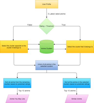 Anime is quite well-received today, especially among the younger generations. With many genres of available shows, more and more people are increasingly getting attracted to this niche section of the entertainment industry. As anime has recently garnered mainstream attention, we have insufficient information regarding users' penchant and watching habits. Therefore, it is an uphill task to build a recommendation engine for this relatively obscure entertainment medium. In this attempt, we have built a novel hybrid recommendation system that could act both as a recommendation system and as a means of exploring new anime genres and titles. We have analyzed the general trends in this field and the users' watching habits for coming up with our efficacious solution. Our solution employs deep autoencoders for the tasks of predicting ratings and generating embeddings. Following this, we formed clusters using the embeddings of the anime titles. These clusters form the search space for anime with similarities and are used to find anime similar to the ones liked and disliked by the user. This method, combined with the predicted ratings, forms the novel hybrid filter. In this article, we have demonstrated this idea and compared the performance of our implemented model with the existing state-of-the-art techniques.