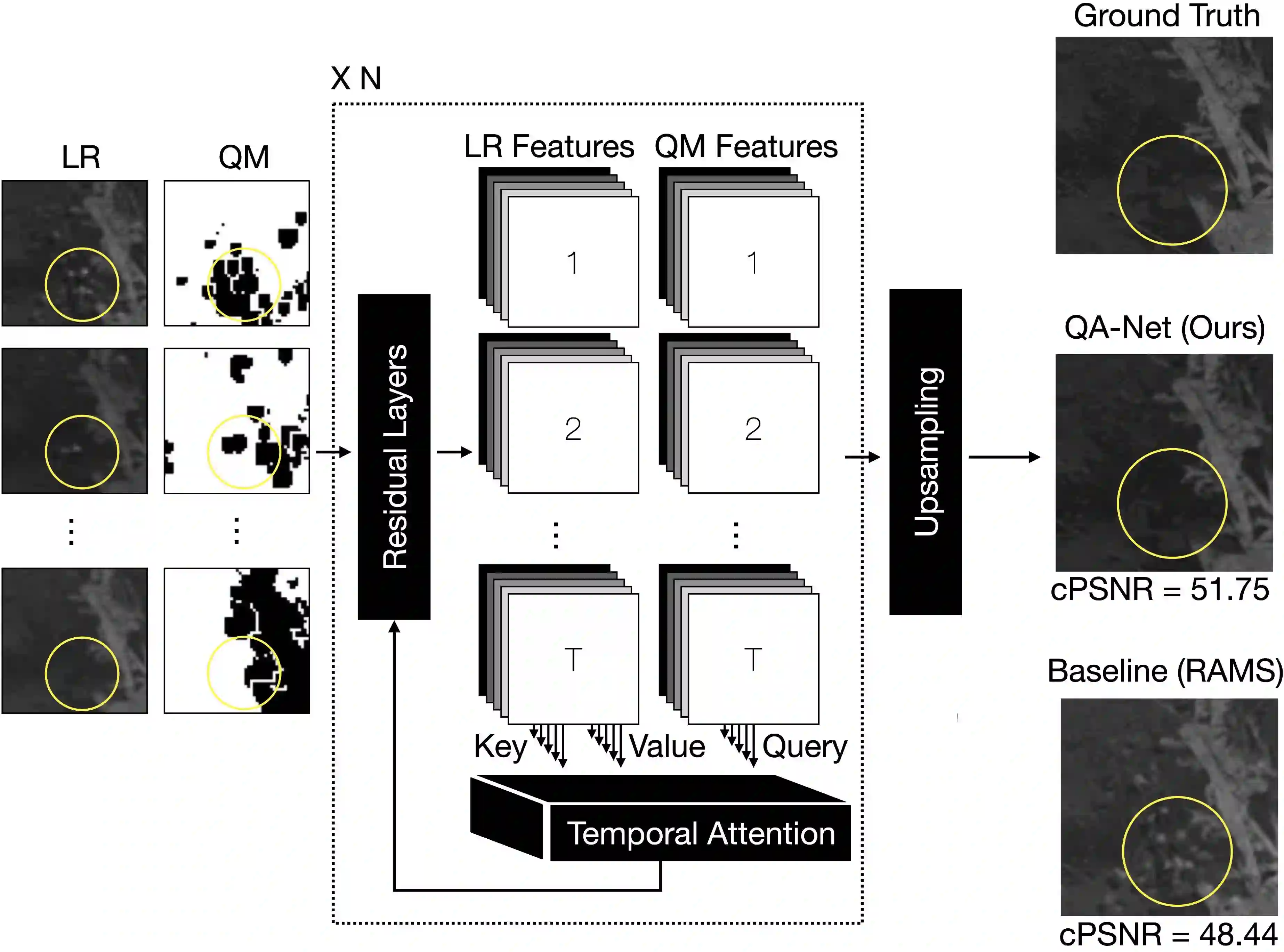 翻译:多图像超分辨率旨在从同一地点的多个图像中结合并恢复高分辨率图像,对于利用卫星图像至关重要,卫星图像往往被云层等大气扰动所包围,扰动的位置因图像而异,建议采用许多辐射计和几何方法探测大气扰动,但利用探测结果,即深层学习的高质量地图仅限于预处理或计算损失。在本文件中,我们提出了一个高质量的地图相关关注网络(QA-Net),这是一个首次将QMS充分纳入深层学习计划的架构。我们提议的注意模块在低分辨率图像的同时处理QMS,并利用QM特性来区分扰动和关注图像特征。因此,QA-Net在PROBA-V数据集中取得了最新成果。