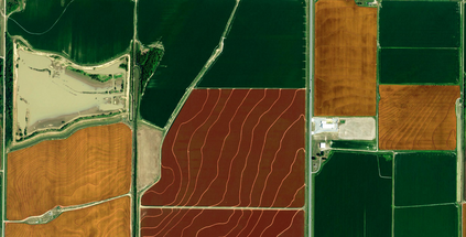 High-resolution aerial imagery allows fine details in the segmentation of farmlands. However, small objects and features introduce distortions to the delineation of object boundaries, and larger contextual views are needed to mitigate class confusion. In this work, we present an end-to-end trainable network for segmenting farmlands with contour levees from high-resolution aerial imagery. A fusion block is devised that includes multiple voting blocks to achieve image segmentation and classification. We integrate the fusion block with a backbone and produce both semantic predictions and segmentation slices. The segmentation slices are used to perform majority voting on the predictions. The network is trained to assign the most likely class label of a segment to its pixels, learning the concept of farmlands rather than analyzing constitutive pixels separately. We evaluate our method using images from the National Agriculture Imagery Program. Our method achieved an average accuracy of 94.34\%. Compared to the state-of-the-art methods, the proposed method obtains an improvement of 6.96% and 2.63% in the F1 score on average.