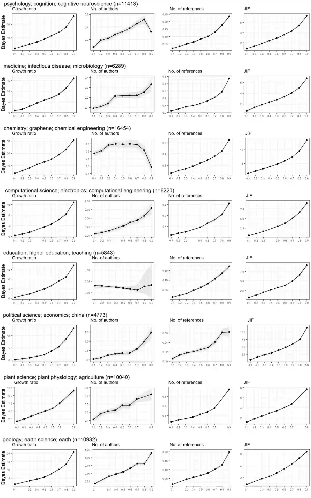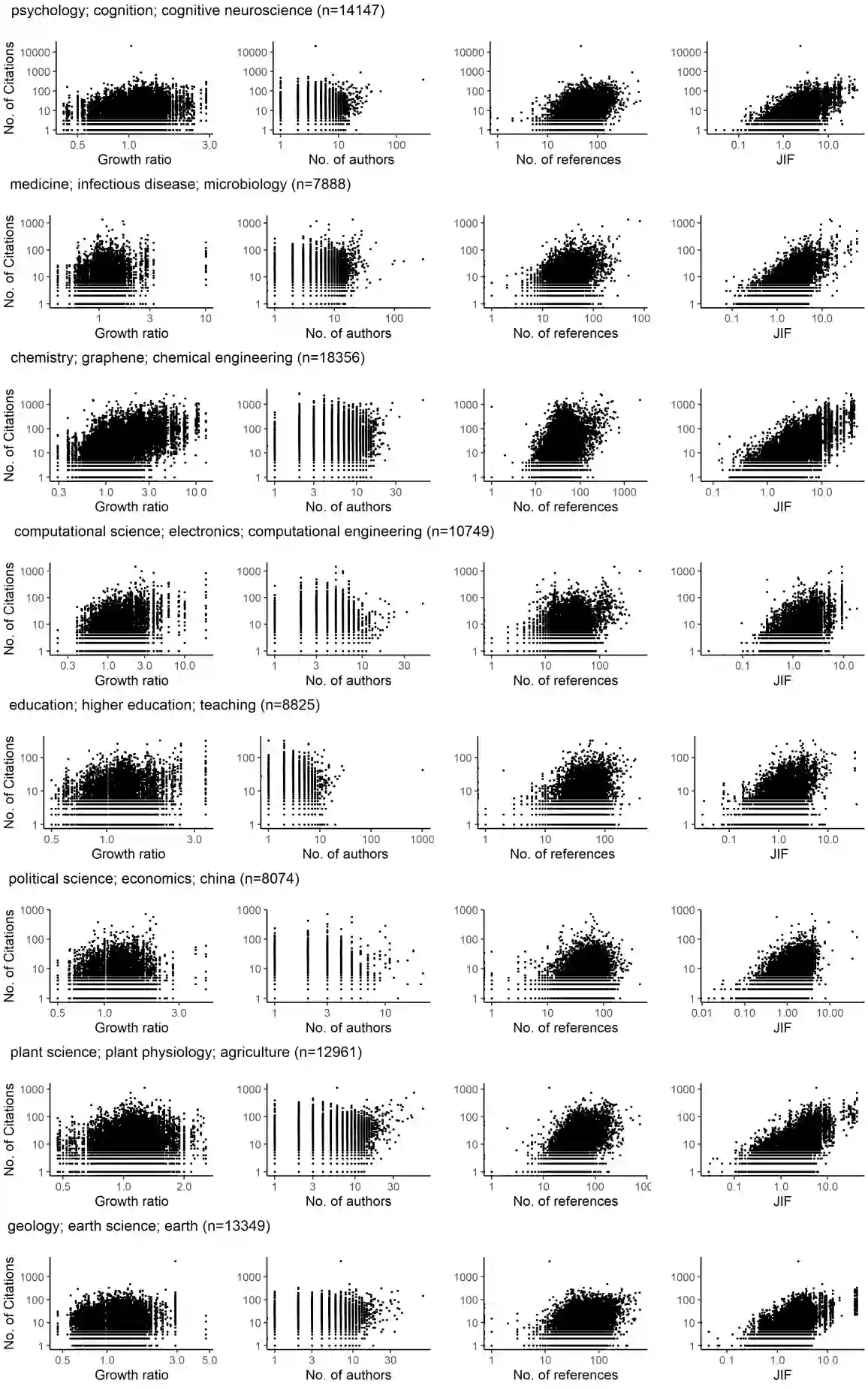 翻译:文献中研究了若干引证因素。本研究中,我们提出了一个新的因素,即专题增长,以前没有进行过任何经验研究。专题的增长率可能会影响未来的引证计数,因为一个专题的增长率意味着有更多的出版物引用这个专题的以往出版物。我们在一个引证网络中利用社区探测来构建专题,并使用一个由两部分组成的回归模型来研究八个广泛学科的专题增长和引证计数之间的联系。模型的第一部分利用量回归来估计出版物引用率的增长比率对引用率的影响,但有三处以上引用。模型的第二部分利用后勤回归来模拟解释变量对低引用率的可能性的影响,而只是适度或高引用。两种变量的模型都可能扭曲专题增长与引文之间的联系:期刊影响、参考次数和作者人数。回归模型清楚地表明,在快速增长的专题中,出版物在引用率方面有一个引证优势,与出版物对引用率计数的影响相比,在引用率超过三个引用量的出版物中,在引用率上出现下降。模型的第二部分利用物流回归模型来模拟解释解释解释解释变量对低被引用的可能性,而在研究领域,在研究领域,可能使研究领域出现迅速研究的结果。在8项中,在研究中,使用这些研究中,在研究中,可能使研究领域产生快速研究中产生影响。在研究中,在研究中,在研究领域出现。在研究领域产生快速影响。在研究领域出现。在研究领域,在研究领域,在研究领域,在研究领域,可能使研究领域出现。在研究方面,在研究领域出现。在研究领域产生快速研究领域出现。在研究领域出现。在研究领域出现。在研究领域出现。