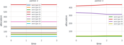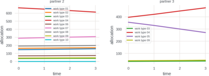 In today's digital world, interaction with online platforms is ubiquitous, and thus content moderation is important for protecting users from content that do not comply with pre-established community guidelines. Having a robust content moderation system throughout every stage of planning is particularly important. We study the short-term planning problem of allocating human content reviewers to different harmful content categories. We use tools from fair division and study the application of competitive equilibrium and leximin allocation rules. Furthermore, we incorporate, to the traditional Fisher market setup, novel aspects that are of practical importance. The first aspect is the forecasted workload of different content categories. We show how a formulation that is inspired by the celebrated Eisenberg-Gale program allows us to find an allocation that not only satisfies the forecasted workload, but also fairly allocates the remaining reviewing hours among all content categories. The resulting allocation is also robust as the additional allocation provides a guardrail in cases where the actual workload deviates from the predicted workload. The second practical consideration is time dependent allocation that is motivated by the fact that partners need scheduling guidance for the reviewers across days to achieve efficiency. To address the time component, we introduce new extensions of the various fair allocation approaches for the single-time period setting, and we show that many properties extend in essence, albeit with some modifications. Related to the time component, we additionally investigate how to satisfy markets' desire for smooth allocation (e.g., partners for content reviewers prefer an allocation that does not vary much from time to time, to minimize staffing switch). We demonstrate the performance of our proposed approaches through real-world data obtained from Meta.