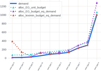 翻译:在当今的数字世界中,与在线平台的互动无处不在,因此,内容节制对于保护用户不受不符合事先确立的社区准则的内容影响非常重要。在规划的每个阶段都有一个强有力的内容节制系统特别重要。我们研究了将人的内容审评员分配到不同有害内容类别的短期规划问题。我们使用公平分工和研究适用竞争性平衡和地法分配规则的工具。此外,我们将具有实际重要性的新内容纳入传统的渔业市场设置。第一个方面是不同内容类别的工作量预测。我们展示了由庆祝的艾森堡-盖勒方案激励的一种配方如何让我们找到一个不仅满足预测的工作量,而且在所有内容类别中公平地分配剩余审查时间的配方。因此,分配也很强劲,因为在实际工作量与预期工作量不同的情况下,增加分配提供了保障。第二个实际考虑是时间上的分配,因为伙伴需要为审评员安排时间,从不同类别的工作量到实现效率。我们展示了时间组成部分的调整,而不是时间上的调整,我们提出了新的时间,我们从不同的配置到各个内容的配置,我们展示了不同的分配方式,我们为不同的市场规定了新的分配时间,我们从不同的分配,我们从不同的分配,从不同的分配到不同的分配,我们为不同的市场,我们为不同的分配,我们为不同的分配了一定的计算。