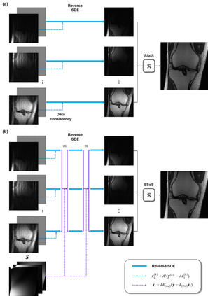 翻译:基于分数的传播模型为利用数据分布梯度来模拟图像提供了强大的方法。 将所学得的分数函数作为先期利用, 在此我们引入了一种方法, 从测量条件下的有条件分布中取样数据, 这样模型可以很容易地用于解决成像中的反向问题, 特别是加速的磁共振。 简言之, 我们用分数匹配来训练一个持续的时间依赖的得分函数。 然后, 在推论阶段, 我们将数字SDE解码器和数据一致性预测步骤进行循环, 以实现重建。 我们的模型需要数量级图像, 仅用于培训, 并且能够重建复杂价值的数据, 甚至可以扩展到平行的成像。 所提议的方法对于次抽样模式来说是不可知的, 并且可以用于任何取样计划。 此外, 由于其具有基因化的性质, 我们的方法可以量化不确定性, 而在标准的回归设置上是不可能的。 在所有的优点上, 我们的方法也有非常强的性能, 甚至击败经过全面监督的模型。 通过广泛的实验, 我们核查了我们的方法在质量和实用性方面的优势。