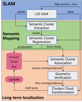 翻译:3D 数据本地化对于无人飞行器来说是一项艰巨的任务,特别是在长期动态城市情景中。由于一般性和长期稳定性,极形物体非常适合作为在时间变化情景中无人飞行器本地化的里程碑。在本文件中,根据语义组群图提出了长期的LIDAR(仅限LIDAR)本地化算法。首先,利用革命神经网络(CNN)来推断LIDAR点云层的语义。结合点云层分割法,长期固定物体在现场的极值/丘纹图被提取并登记在语义组图中。当无人飞行器再次进入环境时,则通过将本地地图的组群与全球地图组相匹配来完成重新本地化。此外,为了纠正3DLIDAR点云层的漂移,全球星座图(CNNNNNN)被持续地拼凑在一起。拟议的方法在不维持高精度轨道点云层/轨图的情况下实现长期本地化。实验性结果将显示在本地数据库/RLR的当前数据源图中。