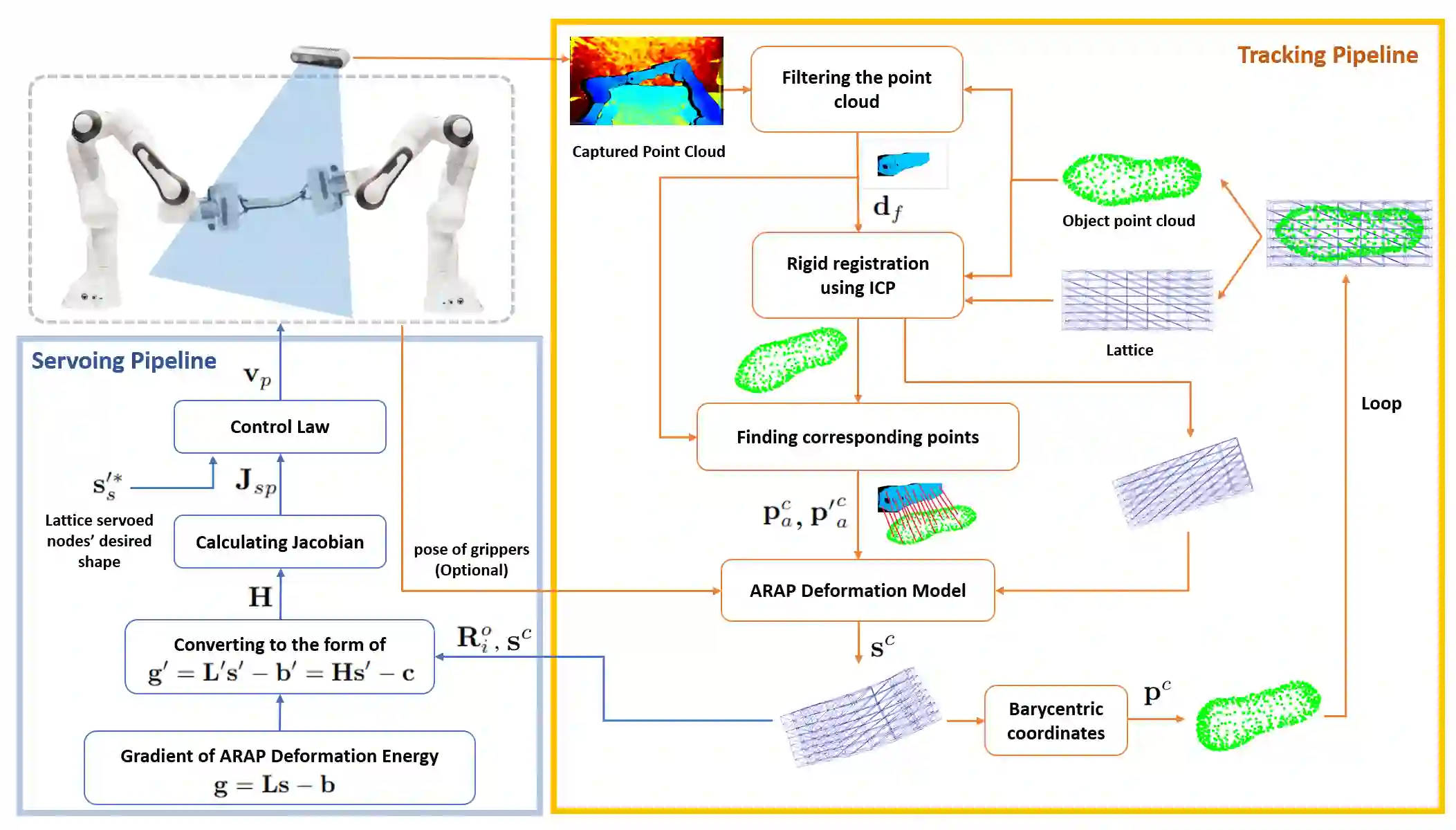 翻译:在本文中, 我们提出一个通用的统一跟踪- 观察方法, 用于控制使用机器人臂控制弹性变形物体的形状。 我们的方法是围绕天体形成一个螺旋形, 将天体绑紧到天体上, 并跟踪和复制天体, 而不是天体。 这样, 我们的方法对任何一般形式的变形物体( 线形、 薄壳、 体积) 都有完全的 3D 控制。 此外, 它使天体的运行时间复杂性与天体的几何复杂度脱钩 。 我们的方法基于 As- Rigid- As- possib( ARAP) 变形模型。 它不需要该天体的机械参数, 并且能够通过大型变形来驱动天体。 我们的方法的输入是天体表面的点云, 以及每个框架的3D 相机所捕捉到的点云。 总体而言, 我们的方法比现有的方法更加广泛适用。 我们验证了我们的方法的效率, 我们的方法是通过不同形状和材料的变形物体进行无数的实验( 纸质/ 软体体/ 软体/ 实验性网站 。 。