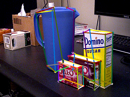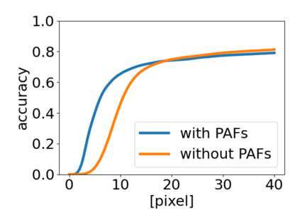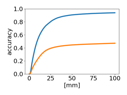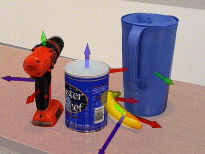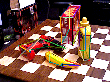 翻译:6D 对象根据 RGB 图像进行估计是自动服务机器人能够与真实世界互动的一个重要要求。 在这项工作中,我们提出了一个用于估计6 DoF 翻译和已知对象方向的两步管道。 使用 OpenPose CNN 结构的输入图像预测了关键点和部分亲近字段(PAFs) 。 然后,通过 PnP-RANSAC 算法,从检测到的2D-3D 关键点与模型关键点之间的对等中计算了对象。 在YCB-Video 数据集上评价了拟议方法,并实现了与文献最新方法相同的准确性。 使用 PAFs 将检测到的键点组合到目标实例中,证明仅使用热测器才比目标实例更有利。 用于预测单个对象类别关键点的模型经过培训,其运行比几个类的模型要好得多。