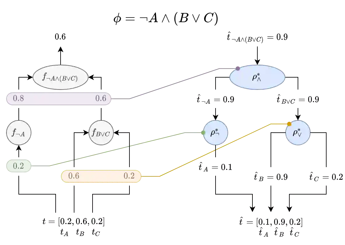 翻译:最近的工作表明,我们可以利用学习系统中的逻辑背景知识来弥补缺乏标签培训数据的情况。许多这类方法通过创建一种记录这种知识的损失函数而发挥作用。然而,即使这种逻辑在测试时仍然有用,但往往在培训后被抛弃。相反,我们通过用额外的计算步骤来改进预测,确保神经网络预测能够满足知识。我们引入了不同的改进功能,找到接近原始预测的纠正预测。我们研究如何有效和高效地计算这些改进功能。我们使用新的算法,将精细的功能结合起来,找到任何复杂逻辑公式的精细预测。这种算法发现对复杂的SAT公式的最佳改进,其迭代数要少得多,经常在梯度下降无法找到解决办法。