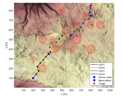 翻译:这项研究提出了一种办法,用以建立一个利用多无人驾驶飞行器提供灾害地区紧急通信的最佳多光伏特设网络,其中包括两个阶段,一个阶段是利用粒子群优化(PSO)找到部署无人驾驶飞行器的最佳位置,另一个阶段是使用基于行为的控制器将无人驾驶飞行器引导到其指定的位置,而不会与未知环境中的障碍相冲突。与无人驾驶飞行器的感应和通信范围有关的一些限制已经施加,以确保拟议办法在现实世界情景中的适用性。已经进行了若干模拟实验,从真实环境中输入数据。结果显示,我们拟议的办法不仅成功地建立了多光速临时航线,而且满足了实时部署无人驾驶飞行器的要求。