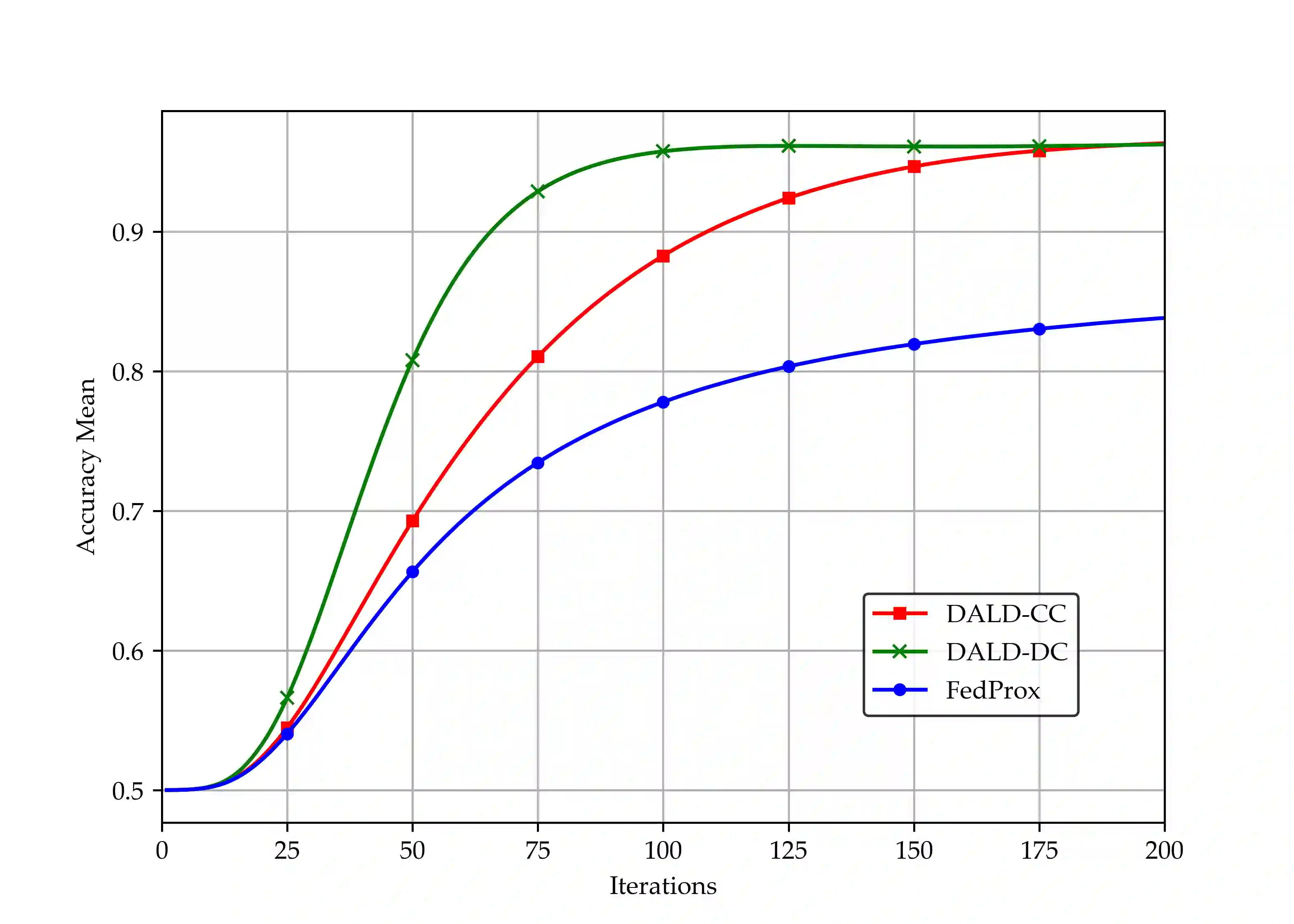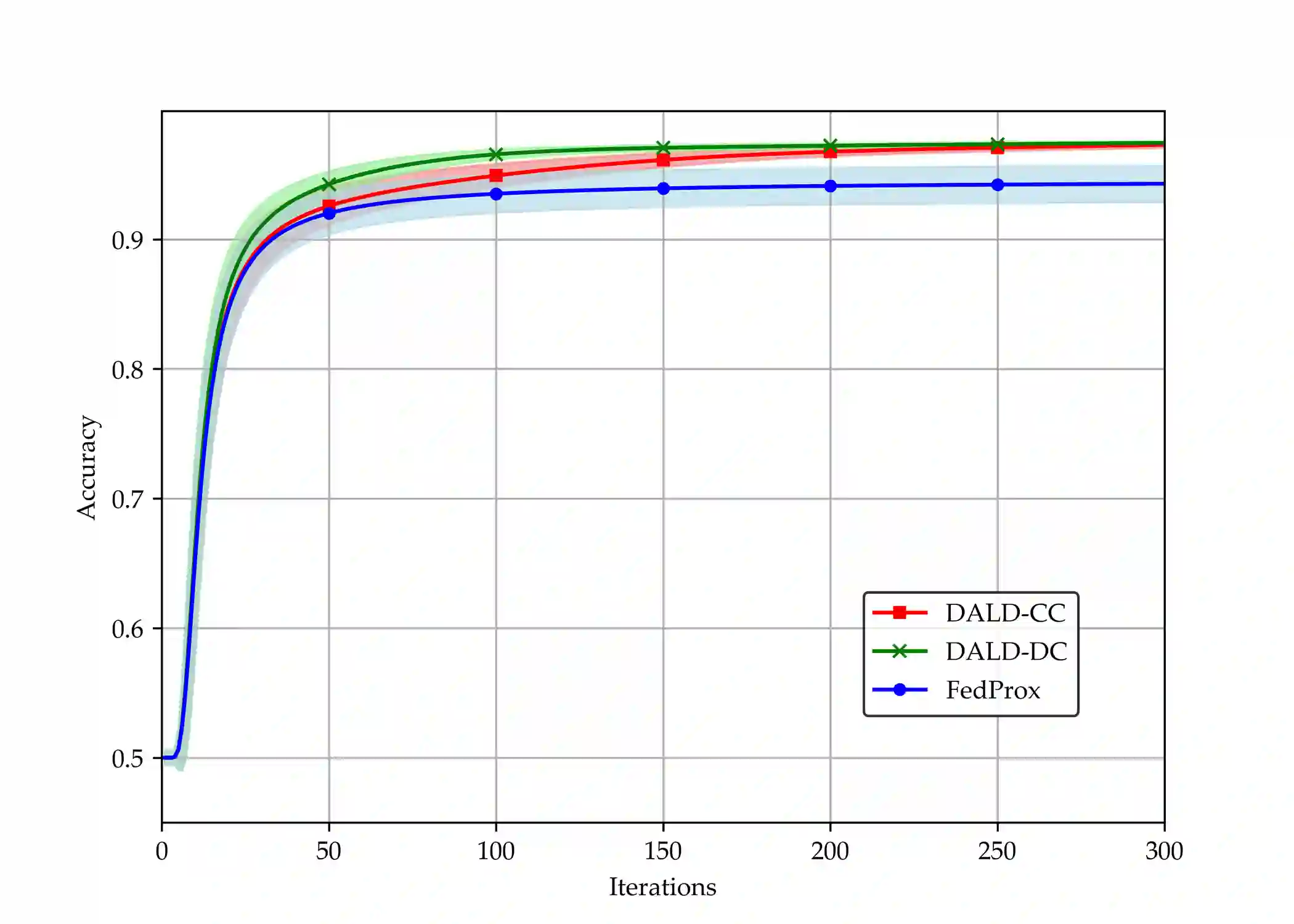 翻译:联邦学习(FL)作为一种在隐私保护约束下的分布式协同机器学习(ML)框架,在跨组织数据协作场景中日益受到研究关注。本文提出了一类基于增广拉格朗日技术的分布式优化算法,旨在适应集中式与去中心化联邦学习设置中的多样化通信拓扑。此外,我们开发了多种终止准则与参数更新机制以提升计算效率,并辅以严格的收敛理论保证。通过结合邻近松弛与二次近似对增广拉格朗日松弛进行推广,本框架系统性地涵盖了一系列经典无约束优化方法,包括邻近算法、经典梯度下降法及随机梯度下降法等。值得注意的是,这些方法的收敛性质可在所提出的理论框架内自然推导得出。数值实验表明,所提算法在客户端间存在显著统计异质性的大规模场景中表现出优越性能。