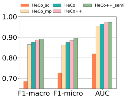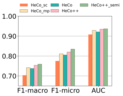 Heterogeneous graph neural networks (HGNNs) as an emerging technique have shown superior capacity of dealing with heterogeneous information network (HIN). However, most HGNNs follow a semi-supervised learning manner, which notably limits their wide use in reality since labels are usually scarce in real applications. Recently, contrastive learning, a self-supervised method, becomes one of the most exciting learning paradigms and shows great potential when there are no labels. In this paper, we study the problem of self-supervised HGNNs and propose a novel co-contrastive learning mechanism for HGNNs, named HeCo. Different from traditional contrastive learning which only focuses on contrasting positive and negative samples, HeCo employs cross-view contrastive mechanism. Specifically, two views of a HIN (network schema and meta-path views) are proposed to learn node embeddings, so as to capture both of local and high-order structures simultaneously. Then the cross-view contrastive learning, as well as a view mask mechanism, is proposed, which is able to extract the positive and negative embeddings from two views. This enables the two views to collaboratively supervise each other and finally learn high-level node embeddings. Moreover, to further boost the performance of HeCo, two additional methods are designed to generate harder negative samples with high quality. Besides the invariant factors, view-specific factors complementally provide the diverse structure information between different nodes, which also should be contained into the final embeddings. Therefore, we need to further explore each view independently and propose a modified model, called HeCo++. Specifically, HeCo++ conducts hierarchical contrastive learning, including cross-view and intra-view contrasts, which aims to enhance the mining of respective structures.