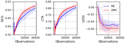 翻译:Plackett-Luce(Plackett-Luce)(Plackett-Luce)(PL)模式在学习到排名(LTR)方面无处不在,因为它为抽样排名列表提供了一个有用和直觉的概率模型。反事实离线评价和优化排名指标对于使用LTR方法的生产至关重要。在采用Plcl模式时,需要计算模型的预期值。这两项任务通常通过Monte-Carlo(MC)抽样方法进行,因为要排名的项目数量组合缩放使得其分析计算难以进行。尽管最近通过Gumberl 最高K 骗术在提高取样过程的计算效率方面取得了进展,但MC的估计可能存在很大差异。我们开发了一种新颖的方法,通过将 Gumbel 顶级诀窍与准Monte Carlo(QMC) 取样方法相结合,一种成熟的减少差异的技术,从而产生出更高效的PLPLS模型期望值的样本。我们用亚马孙音乐和Yahoo 学习到 挑战中真实世界建议数据来说明我们的调查结果。