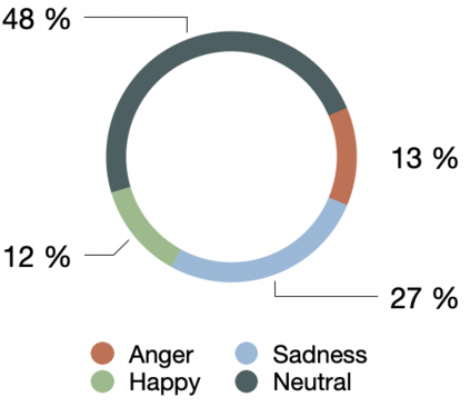 翻译:在本文中,为了验证我们神经网络结构的性能,以便通过言论来认识情绪,我们首先在社区可以接触到的广受使用的软件中培训和测试了它。我们随后使用与真实生活资料相同的结构,即CEMO,由485名发言者的440个对话(2h16m)组成。在现实生活紧急对话中,呼唤者最经常表达的情感是恐惧、愤怒和积极情绪,如救济。在IEMOC的一般性主题对话中,最经常的情感是悲伤、愤怒和幸福。我们使用同样的端到端深学习结构,即IEMOCAP获得63%的无重量缩微调回声(UA),CEMO有45.6%的UA,每个有4类。CEMO最经常表达的情绪是恐惧、愤怒和积极情绪,例如救济等。在IMO的一般主题对话中,最经常出现的情绪是悲伤、愤怒和快乐。在IAMO中,我们从真实的情感分析中可以明显地看到,通过AA-CA-C-C-C-C-CReral-deal 和81.1级的动作与ILA-LA-I-I-I-I-I-I-I-I-I-I-I-I-I-I-L-I-I-I-I-I-L-I-I-I-I-I-I-I-I-I-I-I-I-I-I-I-I-I-L-I-I-I-I-I-I-I-I-I-I-I-I-I-I-I-I-I-I-I-I-I-I-I-I-I-I-I-I-I-I-I-I-I-I-I-I-I-I-I-MA-MA-MA-L-I-MA-MA-MA-MA-MA-MA-MA-L-MA-MA-L-I-I-L-I-I-L-I-I-I-I-I-I-I-I-I-I-I-I-I-I-I-I-I-I-I-I-I-I-I-I-I-I-MA