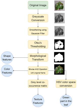 翻译:农业实践中一项重要而乏味的任务就是在作物中发现这种疾病,这既需要大量的时间,也需要熟练的劳动力。本文提出了一种聪明而高效的作物疾病检测技术,使用计算机视觉和机器学习技术。 拟议的系统可以精确地检测5种常见植物中的20种不同的疾病,精确度达到93%。