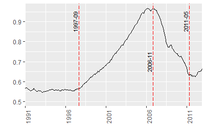 翻译:在本研究中,我们扩展了Pang等人(2021年)的三制度泡沫模型,以允许在恢复后采用单元根过程所遵循的制度;我们提供了两个制度AR(1)模型中崩溃日期估计器一致性的零点和有限样本理由;一致性使我们能够在崩溃日期前后对样本进行分割,并分别考虑对振荡日期和复原日期的估计;我们还发现,恢复日期的限制行为视爆炸性和恢复程度而有所不同。