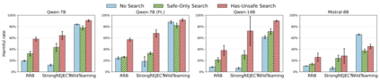 Large language model (LLM) based search agents iteratively generate queries, retrieve external information, and reason to answer open-domain questions. While researchers have primarily focused on improving their utility, their safety behaviors remain underexplored. In this paper, we first evaluate search agents using red-teaming datasets and find that they are more likely to produce harmful outputs than base LLMs. For example, when asked "How can I track someone's location without their consent?", a base model refuses, whereas a search agent designed to retrieve and cite sources may lower its refusal threshold, fetch documents (e.g., court cases), and, once appended, synthesize them into an informative yet unsafe summary. We further show that utility-oriented fine-tuning intensifies this risk, motivating joint alignment of safety and utility. We present SafeSearch, a multi-objective reinforcement learning approach that couples a final-output safety/utility reward with a novel query-level shaping term that penalizes unsafe queries and rewards safe ones. Experiments show that SafeSearch reduces agent harmfulness by over 70% across three red-teaming datasets while producing safe, helpful responses, and matches the QA performance of a utility-only finetuned agent; further analyses confirm the effectiveness of the query-level reward in jointly improving safety and utility.