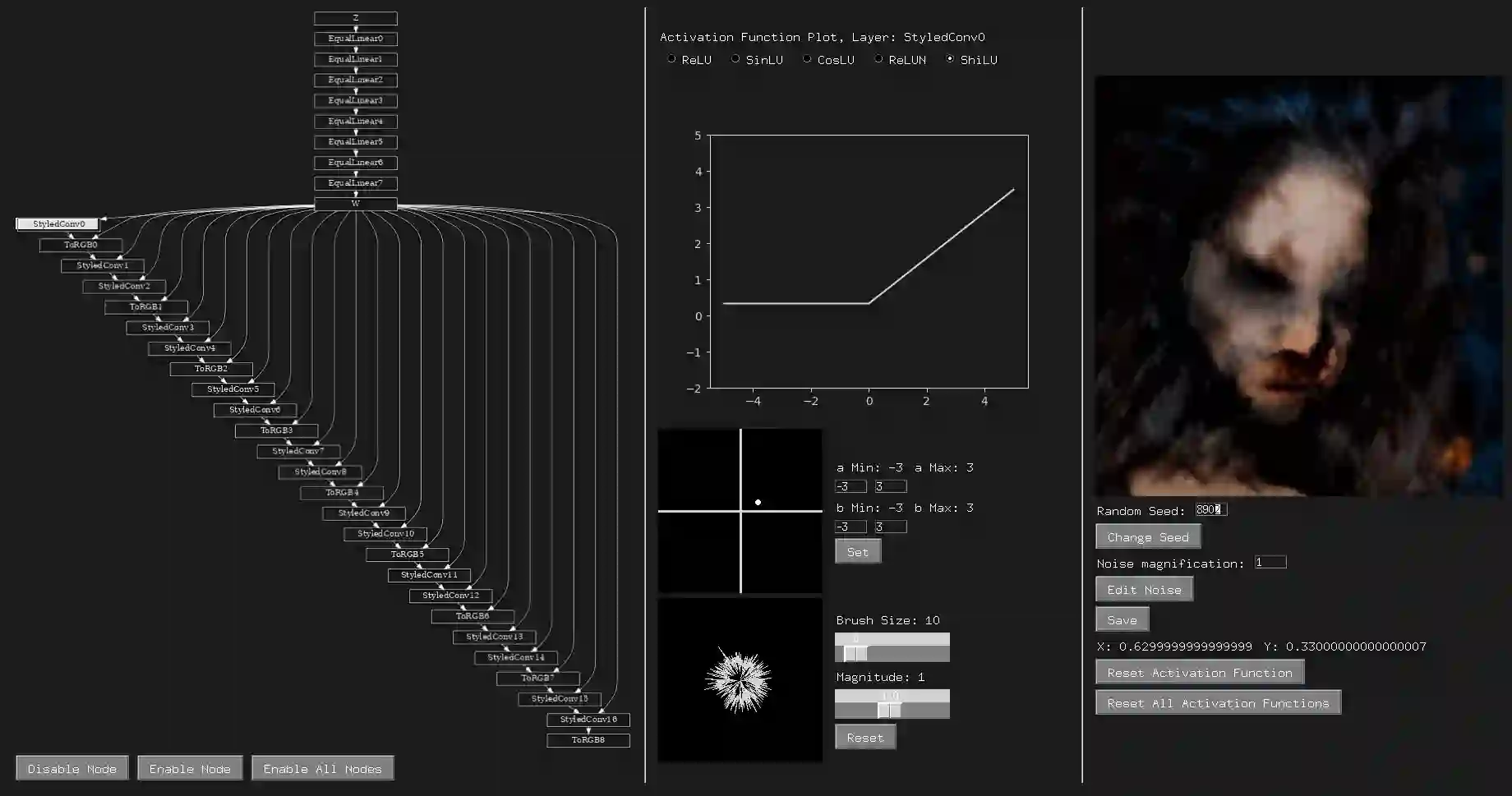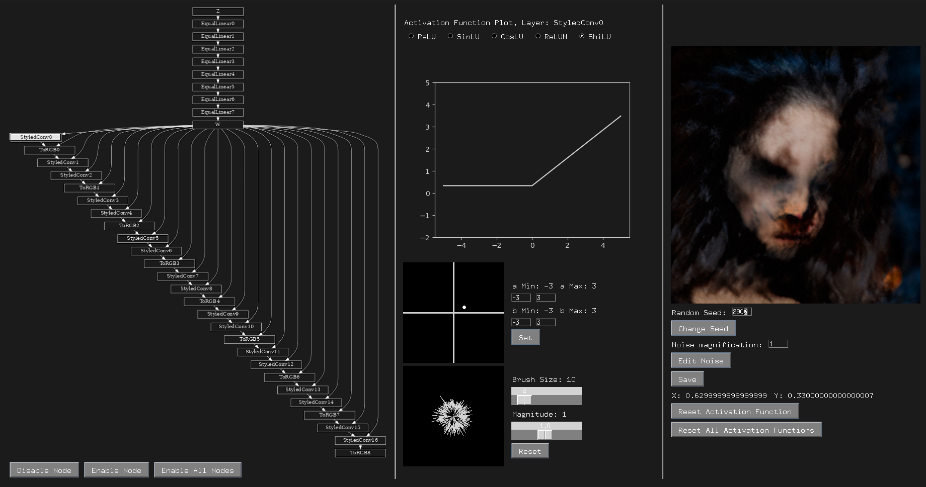 As image generative models continue to increase not only in their fidelity but also in their ubiquity the development of tools that leverage direct interaction with their internal mechanisms in an interpretable way has received little attention In this work we introduce a system that allows users to develop a better understanding of the model through interaction and experimentation By giving users the ability to replace activation functions of a generative network with parametric ones and a way to set the parameters of these functions we introduce an alternative approach to control the networks output We demonstrate the use of our method on StyleGAN2 and BigGAN networks trained on FFHQ and ImageNet respectively.