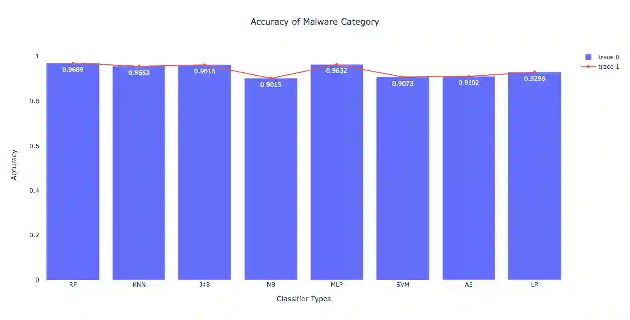 翻译:机器人恶意软件是互联网上最危险的威胁之一, 并且它已经上升了好几年。 尽管在检测和分类方面做出了大量努力, 并且从无害和机器人应用中发现了机器人恶意软件, 但还有很长的路要走。 因此, 需要提供对最常见的和机器人恶意软件类别和家庭所显示的行为的基本理解。 每个和机器人恶意软件家庭和类别有一个截然不同的目标。 结果, 它影响到每个公司领域, 包括医疗保健、 银行、 交通、 政府、 和电子商务。 在本文中, 我们展示了两种用于Andromonard Maware动态分析的机器学习方法: 一种用于检测和识别Android Maware类别, 另一种用于检测和识别Android Maware家庭。 我们的方法是通过分析一个大型恶意软件数据集, 包括14个突出的恶意软件类别以及CCS- CIC- AndMal220 数据组的180个突出的恶意软件家庭。 我们的方法在Android Malaware 类中实现了超过96 % 的精确度检测, 在Androd Mailware Forate器中实现了比99%的精确。 我们的智能智能分析方法也提供了一种高的智能智能智能分析。