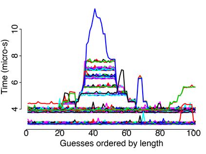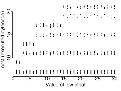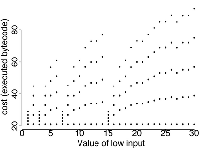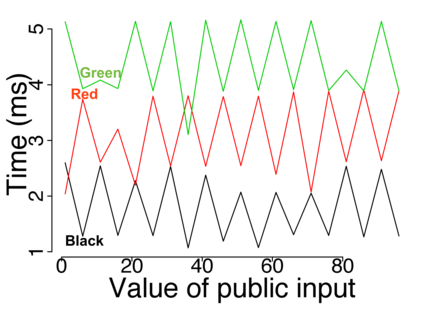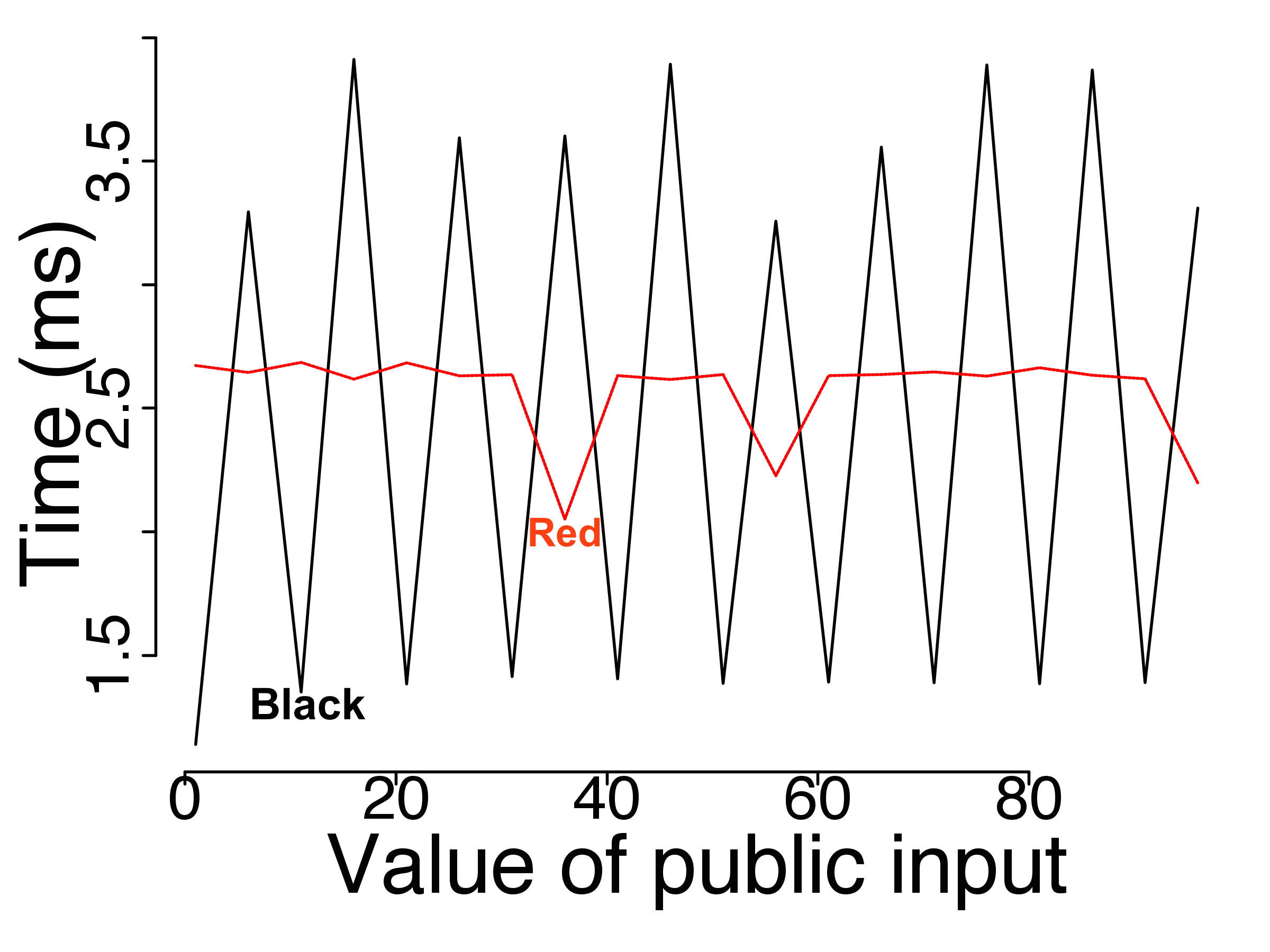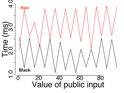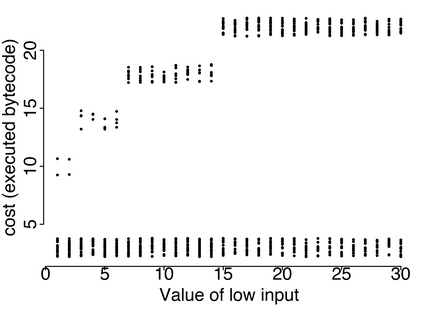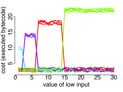 翻译:通过侧渠道泄露信息是一个普遍的问题,即使是在安全关键应用程序中也是如此。 当攻击者知道服务器的秘密价值在一定时间内固定下来时, 功能侧渠道就会出现。 然后, 攻击者可以在不同的公共投入序列上观察服务器的处决, 每个输入都配有相同的秘密输入。 因此, 对于每一个秘密, 攻击者都会看到从公共投入到执行时间的功能, 比如说, 攻击者可以将这些功能从公共投入到执行时间的函数比较为不同的秘密。 首先, 我们引入了一个不干预功能侧渠道的概念。 我们集中关注一个吵闹的观测案例, 我们用实例来证明在程序中有实用的功能侧端端渠道, 这个程序将被视为无功能端渠道或被低估。 其次, 我们开发了一个框架和技术来解密程序。 我们推广了进化的模糊技术, 利用对公众投入的响应时间的功能依赖时间来生成投入。 我们调整了功能性数据分析中的现有结果和算法, 模拟功能侧端渠道的存在。 我们使用标准决定树的扩展功能, 来定位侧端端端端的侧端端渠道, 导致侧端端渠道的代码断断断断, 导致边端渠道的侧渠道的软弱点, 如果在运行轨道上显示一个常规程序, 我们的路径, 将显示了直路, 显示了我们的一个边端点,, 直路, 直路。