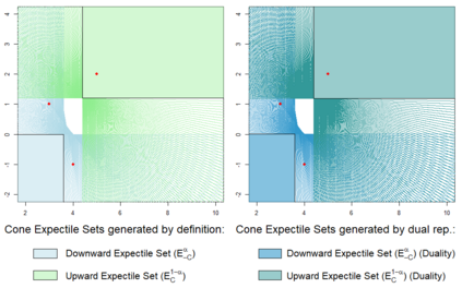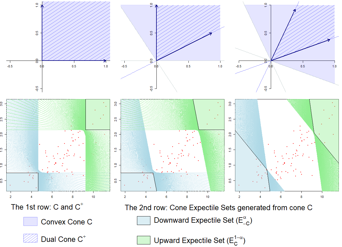 Recently defined expectile regions capture the idea of centrality with respect to a multivariate distribution, but fail to describe the tail behavior while it is not at all clear what should be understood by a tail of a multivariate distribution. Therefore, cone expectile sets are introduced which take into account a vector preorder for the multi-dimensional data points. This provides a way of describing and clustering a multivariate distribution/data cloud with respect to an order relation. Fundamental properties of cone expectiles including dual representations of both expectile regions and cone expectile sets are established. It is shown that set-valued sublinear risk measures can be constructed from cone expectile sets in the same way as in the univariate case. Inverse functions of cone expectiles are defined which should be considered as rank functions rather than depth functions. Finally, expectile orders for random vectors are introduced and characterized via expectile rank functions.
