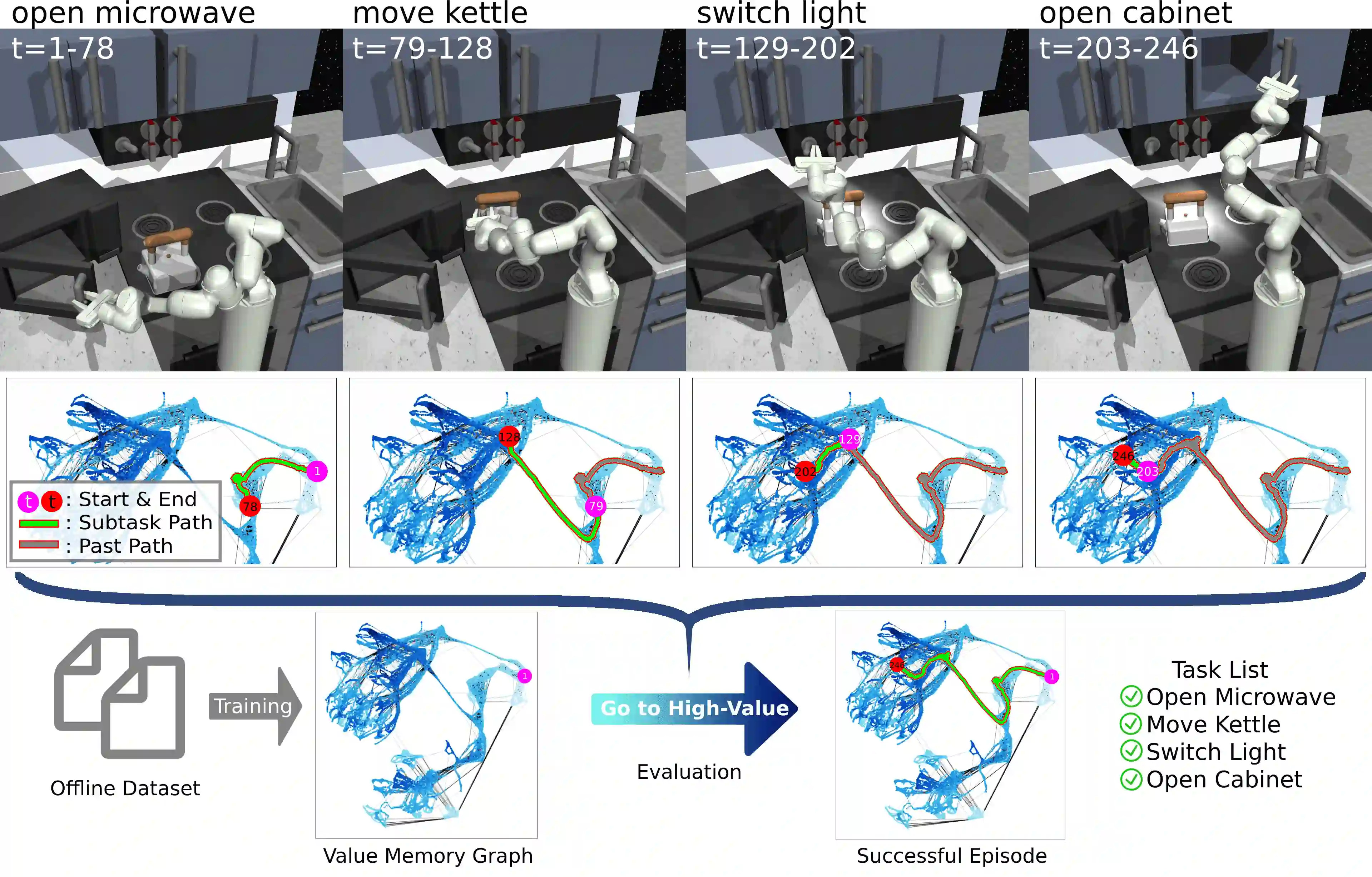 翻译:以模型为基础的强化学习世界模型通常面临不切实际的长期热量预测问题,因为预测错误随着时间跨度的累积而积累,因此,预测错误会增加。图表结构世界模型的近期工作通过建立图形代表环境的图表,提高了长象推理能力,但是这些模型是在有目标条件的设置下设计的,无法指导代理人在传统的强化学习环境中在没有外部给定的目标国的情况下最大限度地实现事件回报。为了克服这一限制,我们设计了一个图表结构世界模型,通过建立定向的Markov决策过程(MDP),为每个定向边缘分配奖励,作为原始连续环境的抽象。由于我们的世界模型与原始环境相比,具有较小和有限的状态/行动空间,因此,这里可以很容易地应用这些数值来估计图表上的数值并描绘最佳的未来。与以前的图表结构世界模型不同,我们的世界模型,调值值记忆图(VMG)可以提供高值的预期目标。VMG可以用来指导低水平目标-限制政策,作为原始连续环境的抽象的抽象过程。通过监督的模型模型,可以用来指导VMG-C-C-C-C-C-C-CL-C-C-CL-C-C-L-C-C-CL-C-C-C-CL-L-L-L-L-L-C-C-C-L-L-L-L-L-L-L-L-L-L-L-L-L-L-L-L-L-L-L-L-L-L-L-D-D-D-D-D-L-D-L-L-L-D-L-L-L-L-L-L-D-L-L-L-L-L-L-L-D-L-L-L-L-L-L-L-L-L-L-L-L-L-L-L-L-L-L-L-L-L-L-L-L-L-L-L-L-L-L-L-L-L-L-L-L-L-L-L-L-L-L-L-L-L-L-L-L-L-L-L-L-L-L-L-L-L-L-L