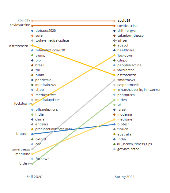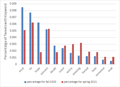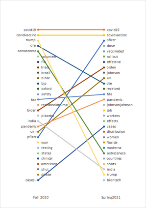 翻译:虽然现在已有数月多种COVID-19疫苗,但在美国,疫苗仍然处于高水平,部分问题也已经政治化,特别是自11月总统选举以来。在包括Twitter在内的社交媒体背景下了解疫苗的闲置性可以为计算社会科学家和决策者提供宝贵的指导。本文没有研究单一的Twitter内容,而是通过比较研究两个不同时期(选举前一个时期和选举后几个月)之间收集的两个Twitter数据集,使用同样的、经过仔细控制的数据收集和过滤方法,对这一问题有了新的认识。我们的结果显示,从2020年秋季到2021年春季,讨论出现了从政治到COVID-19疫苗的重大转变。通过使用集群和机器学习方法进行抽样和定性分析,我们发现了疫苗闲置性的若干细微原因,其中一些随着时间的推移变得更为重要(或更少 ) 。我们的结果还凸显了这一问题在去年的高度两极分化和政治化。