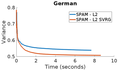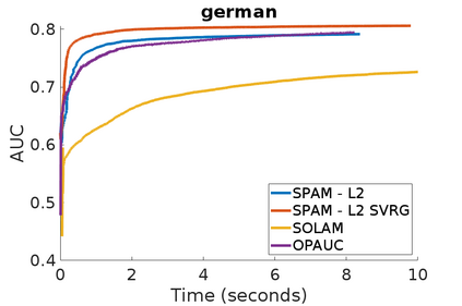 翻译:然而,当使用非可分解的双向性能衡量尺度时,这些随机算法无法直接使用,例如ROC曲线(AUC)下的区域(AUC),这是在分类不平衡时常见的性能衡量尺度。为了优化AUC作为性能衡量尺度,提出了几种计算法,最近提出的一种算法是随机准度梯度算法(SPAM),但是,这些随机分析法的下方是,它们存在高差异,导致趋同速度放慢。为解决这一问题,提出了几种差异减少的方法,但保证汇合速度快于香草类相向梯度下降。同样,在使用不可分解的性能衡量尺度时,这些差异减少的方法不直接适用。在本文中,我们为AUC最大化(\ textsc{VRSPAM})开发了差异性减少的蒸气准性准值算法,并进行理论分析,以表明我们的算法比SPAM(AMAM)更快,而SPAM是AUC最大化问题以前的状态。