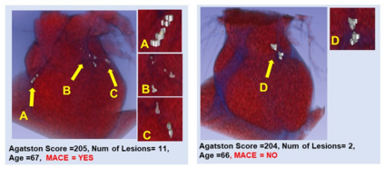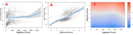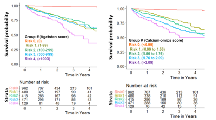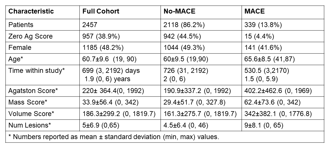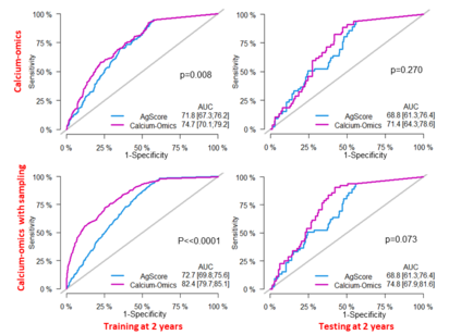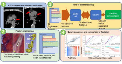 Background. Coronary artery calcium (CAC) is a powerful predictor of major adverse cardiovascular events (MACE). Traditional Agatston score simply sums the calcium, albeit in a non-linear way, leaving room for improved calcification assessments that will more fully capture the extent of disease. Objective. To determine if AI methods using detailed calcification features (i.e., calcium-omics) can improve MACE prediction. Methods. We investigated additional features of calcification including assessment of mass, volume, density, spatial distribution, territory, etc. We used a Cox model with elastic-net regularization on 2457 CT calcium score (CTCS) enriched for MACE events obtained from a large no-cost CLARIFY program (ClinicalTri-als.gov Identifier: NCT04075162). We employed sampling techniques to enhance model training. We also investigated Cox models with selected features to identify explainable high-risk characteristics. Results. Our proposed calcium-omics model with modified synthetic down sampling and up sampling gave C-index (80.5%/71.6%) and two-year AUC (82.4%/74.8%) for (80:20, training/testing), respectively (sampling was applied to the training set only). Results compared favorably to Agatston which gave C-index (71.3%/70.3%) and AUC (71.8%/68.8%), respectively. Among calcium-omics features, numbers of calcifications, LAD mass, and diffusivity (a measure of spatial distribution) were important determinants of increased risk, with dense calcification (>1000HU) associated with lower risk. The calcium-omics model reclassified 63% of MACE patients to the high risk group in a held-out test. The categorical net-reclassification index was NRI=0.153. Conclusions. AI analysis of coronary calcification can lead to improved results as compared to Agatston scoring. Our findings suggest the utility of calcium-omics in improved prediction of risk.